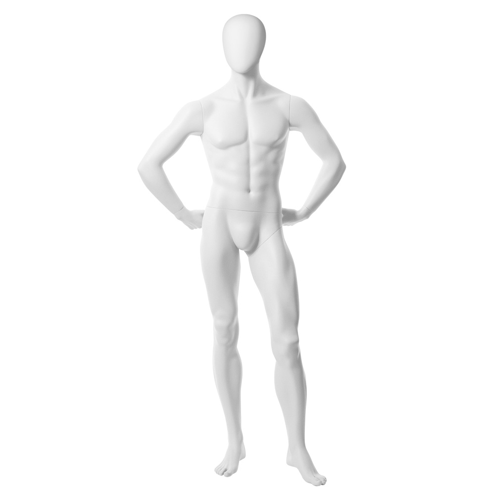 Ανδρική κούκλα βιτρίνας της σειράς London Boys Collection σε όρθια στάση με τα χέρια στη μέση. Το κεφάλι είναι αφαιρετικό αυγοειδές (χωρίς καθόλου λεπτομέρειες προσώπου) και κοιτάζει ευθεία. Είναι κατασκευασμένη από Fiberglass (λεπτές ίνες γυαλιού) ένα υλικό με μεγάλη αντοχή και μικρό βάρος.