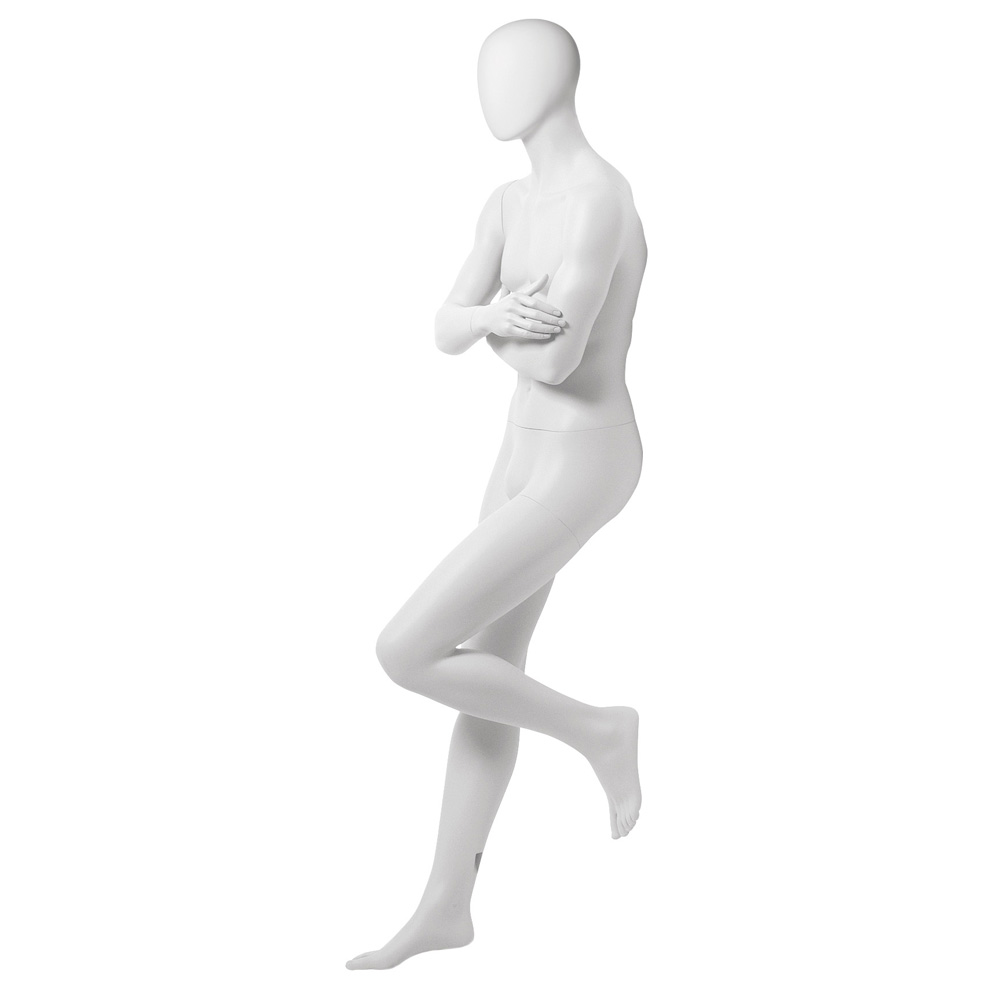 Ανδρική κούκλα βιτρίνας της σειράς London Boys Collection σε όρθια στάση με τα χέρια σταυρωμένα, αριστερό πόδι λυγισμένο. Το κεφάλι είναι αφαιρετικό αυγοειδές (χωρίς καθόλου λεπτομέρειες προσώπου) και κοιτάζει ευθεία. Είναι κατασκευασμένη από Fiberglass (λεπτές ίνες γυαλιού) ένα υλικό με μεγάλη αντοχή και μικρό βάρος.