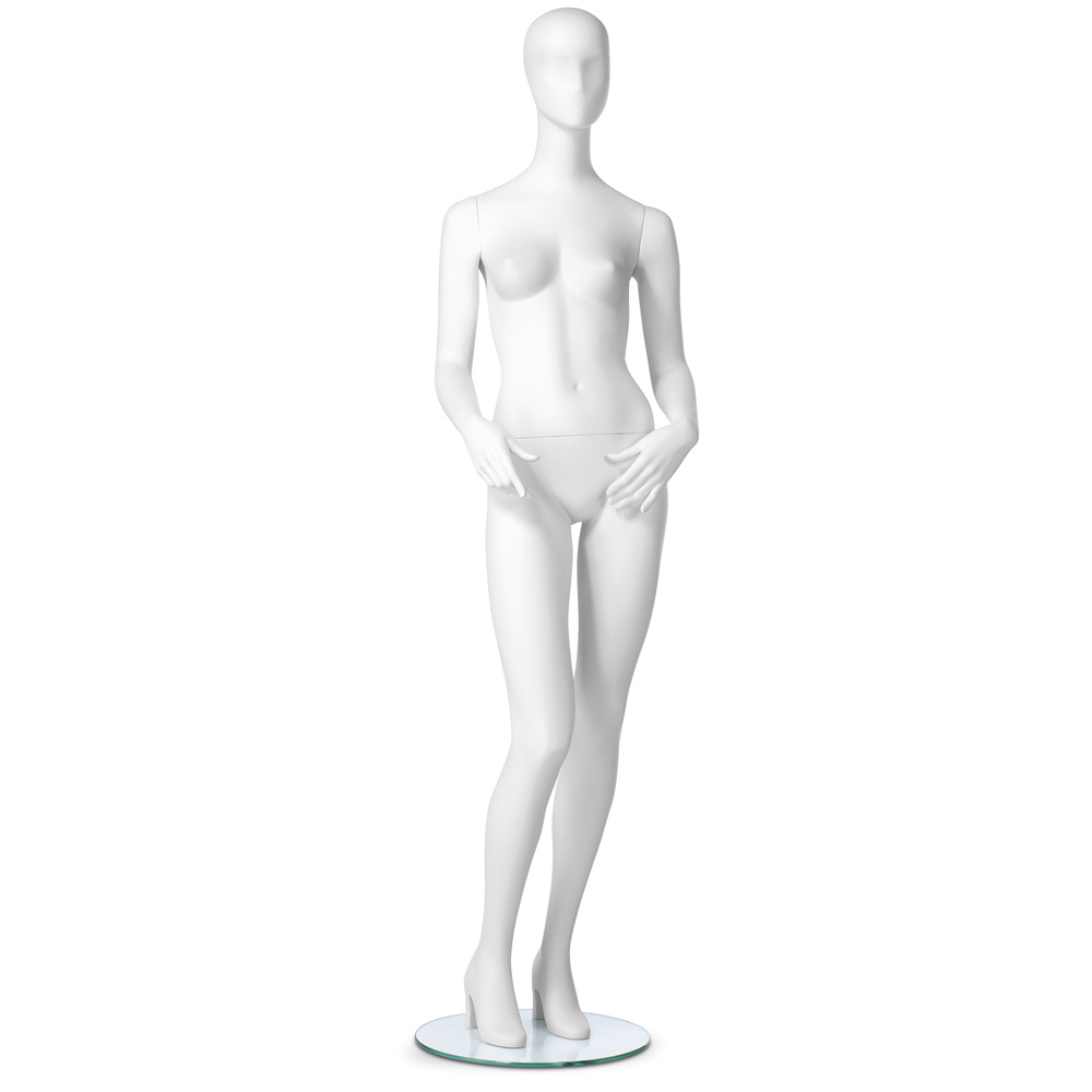 Κούκλα βιτρίνας της σειράς Retro σε όρθια στάση, το κεφάλι κοιτάει ευθεία, τα χέρια κάτω και ελαφρώς λυγισμένα, το δεξό πόδι ελαφρώς λυγισμένο, πατούσες στις μύτες και στις φτέρνες υπάρχει ενσωματωμένο τακούνι το οποίο μπορεί να αφαιρεθεί. Είναι κατασκευασμένη από Fiberglass (λεπτές ίνες γυαλιού) ένα υλικό με μεγάλη αντοχή και μικρό βάρος.