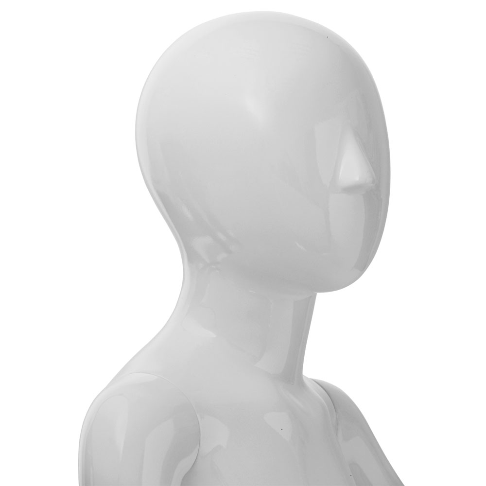 Παιδική κούκλα βιτρίνας 6 Χρονών της σειράς Ringo Kids Collection σε όρθια στάση, το κεφάλι (αφαιρετικό χωρίς καθόλου χαρακτηριστικά προσώπου) κοιτάει ελαφρώς αριστερά, με τα χέρια ίσια (τα χέρια μπορούν να προσαρμοστούν στο ύψος που θέλετε), πόδια σε μικρή διάσταση. Είναι κατασκευασμένη από Fiberglass (λεπτές ίνες γυαλιού - ένα υλικό με μεγάλη αντοχή και μικρό βάρος).