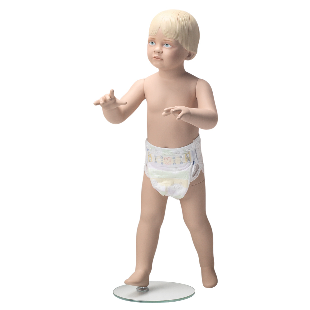 Βρεφική κούκλα βιτρίνας 18 Μηνών της σειράς Little Darlings Sculptured Collection σε όρθια στάση. Το κεφάλι διαθέτει ρεαλιστικά χαρακτηριστικά προσπωπου με μακιγιάζ και ανάγλυφο μαλλί, ενώ το σώμα έχει φυσικό χρώμα δέρματος. Είναι κατασκευασμένη από Fiberglass (λεπτές ίνες γυαλιού - ένα υλικό με μεγάλη αντοχή και μικρό βάρος).