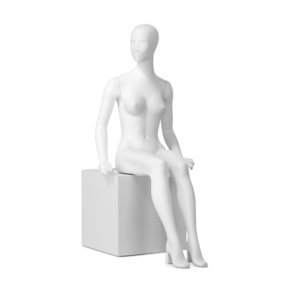 Κούκλα βιτρίνας της σειράς Retro σε καθιστή στάση, το κεφάλι κοιτάει ελαφρώς δεξιά, τα χέρια ακουμπάνε δίπλα στους γοφούς, πατούσες στις μύτες και στις φτέρνες υπάρχει ενσωματωμένο τακούνι το οποίο μπορεί να αφαιρεθεί. Είναι κατασκευασμένη από Fiberglass (λεπτές ίνες γυαλιού) ένα υλικό με μεγάλη αντοχή και μικρό βάρος.