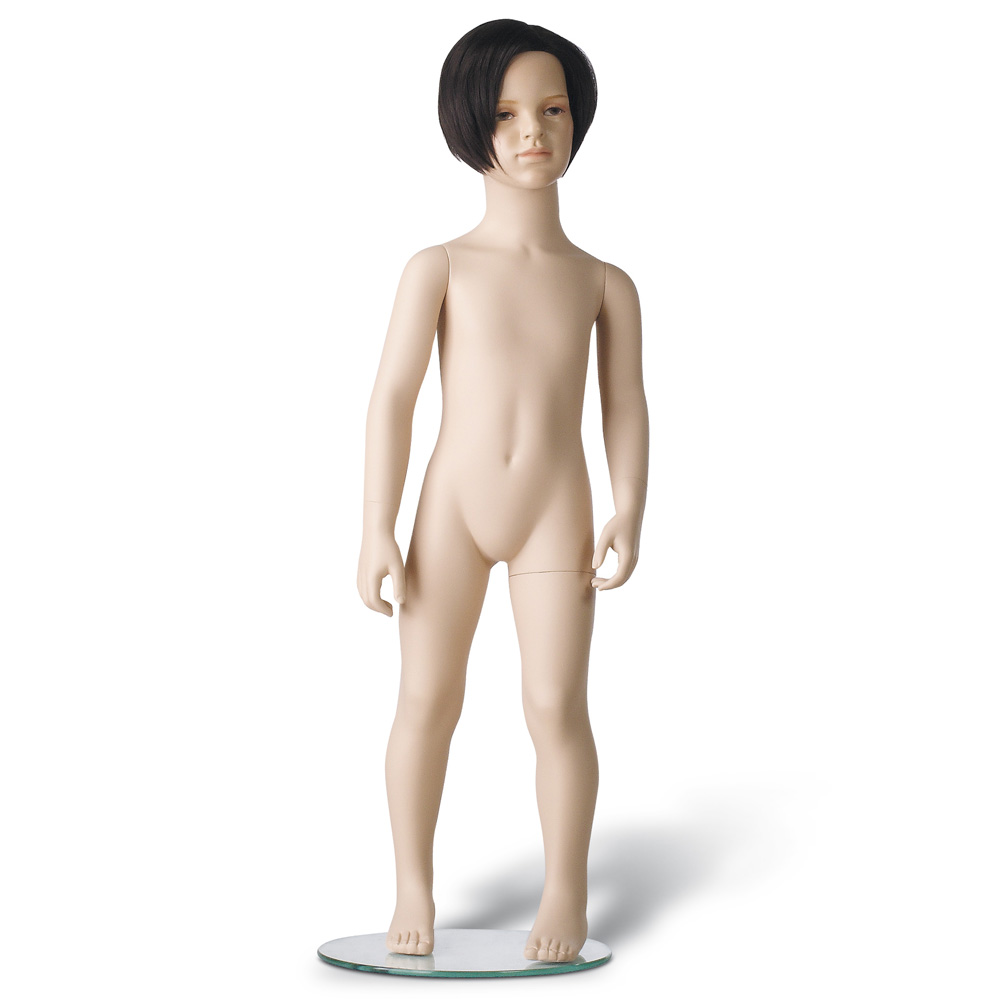 Παιδική κούκλα βιτρίνας 4 Χρονών της σειράς Just Kids σε όρθια στάση, το κεφάλι κοιτάει ευθεία, χέρια κάτω με λυγισμένα δάχτυλα, πόδια σε μικρή διάσταση. Είναι κατασκευασμένη από Fiberglass (λεπτές ίνες γυαλιού - ένα υλικό με μεγάλη αντοχή και μικρό βάρος).