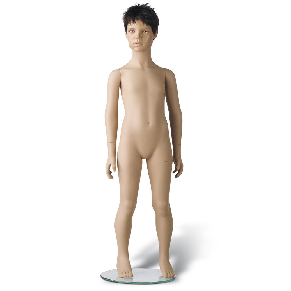 Παιδική κούκλα βιτρίνας 6 Χρονών της σειράς Just Kids σε όρθια στάση, το κεφάλι κοιτάει ελαφρώς δεξιά, χέρια κάτω, πόδια ίσια. Είναι κατασκευασμένη από Fiberglass (λεπτές ίνες γυαλιού - ένα υλικό με μεγάλη αντοχή και μικρό βάρος).