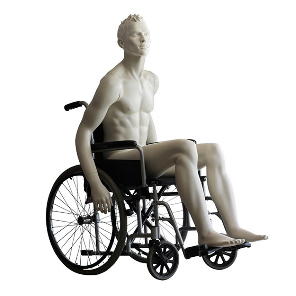 Ανδρική κούκλα με ανάγλυφο μαλλί για προβολή αναπηρικού αμαξιδίου
