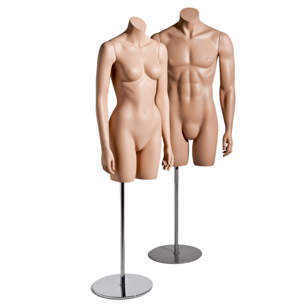 Ανδρικό μπούστο βιτρίνας 3/4 μακρύ (μέχρι τους μηρούς) ακέφαλο με χέρια. Είναι κατασκευασμένο από Fiberglass (λεπτές ίνες γυαλιού - ένα υλικό με μεγάλη αντοχή και μικρό βάρος).