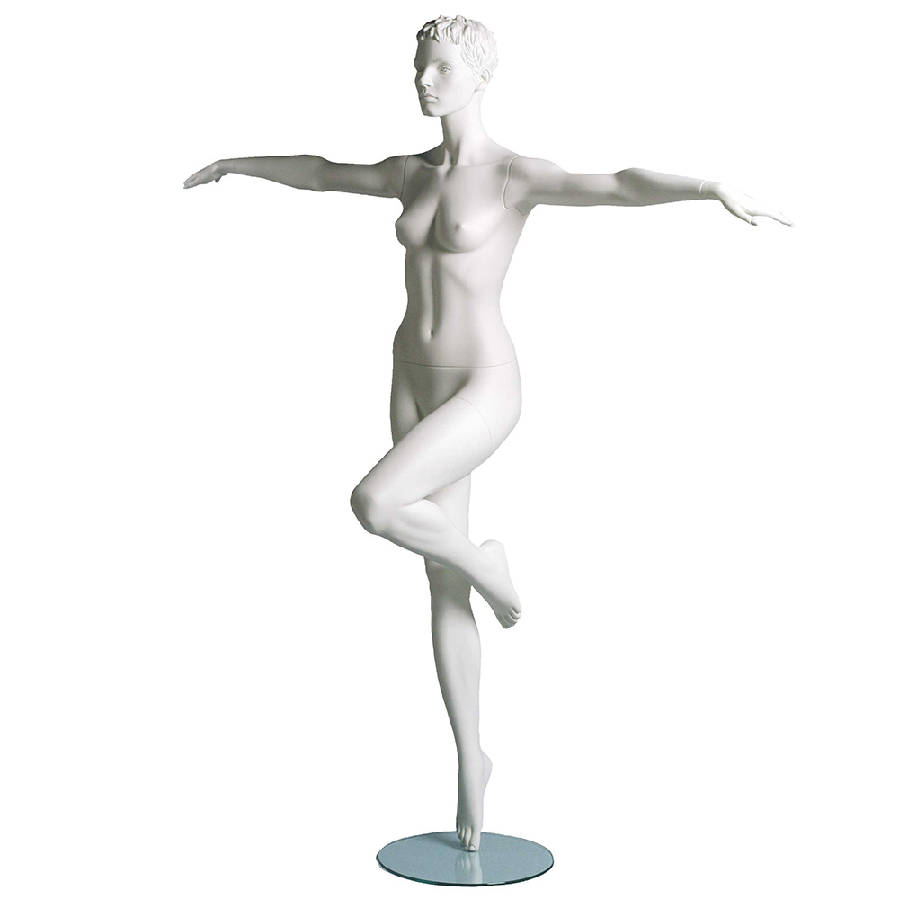 Αθλητική κούκλα βιτρίνας της σειράς Vanessa σε όρθια στάση. To κεφάλι είναι ρεαλιστικό με ανάγλυφο μαλλί (με λεπτομέρειες προσώπου) και κοιτάει ευθεία, χέρια σε διάσταση, αριστερό γόνατο λυγισμένο, δειιά πατούσα πόιντ (στάση aerobic). Είναι κατασκευασμένη από Fiberglass (λεπτές ίνες γυαλιού) ένα υλικό με μεγάλη αντοχή και μικρό βάρος.