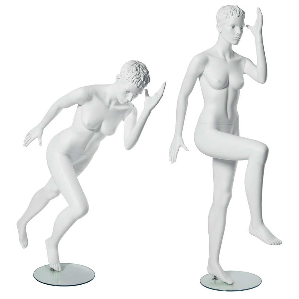 Αθλητική κούκλα βιτρίνας της σειράς Vanessa σε 2 στάσεις To κεφάλι είναι ρεαλιστικό με ανάγλυφο μαλλί (με λεπτομέρειες προσώπου) και κοιτάει ευθεία, δεξί χέρι κάτω και αριστερό με λυγισμλενο αγκώνα, δεξί γόνατο λυγισμένο. Είναι κατασκευασμένη από Fiberglass (λεπτές ίνες γυαλιού) ένα υλικό με μεγάλη αντοχή και μικρό βάρος.