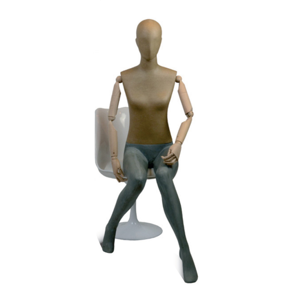 Vintage Γυναικεία κούκλα βιτρίνας καθιστή με αφαιρετικό κεφάλι. Το κεφάλι και το σώμα είναι κατασκευασμένα από πλαστικό με επικάλυψη από Papier-mâché, ξύλινα χέρια και πόδια από πλαστικό με όψη τσιμέντου.