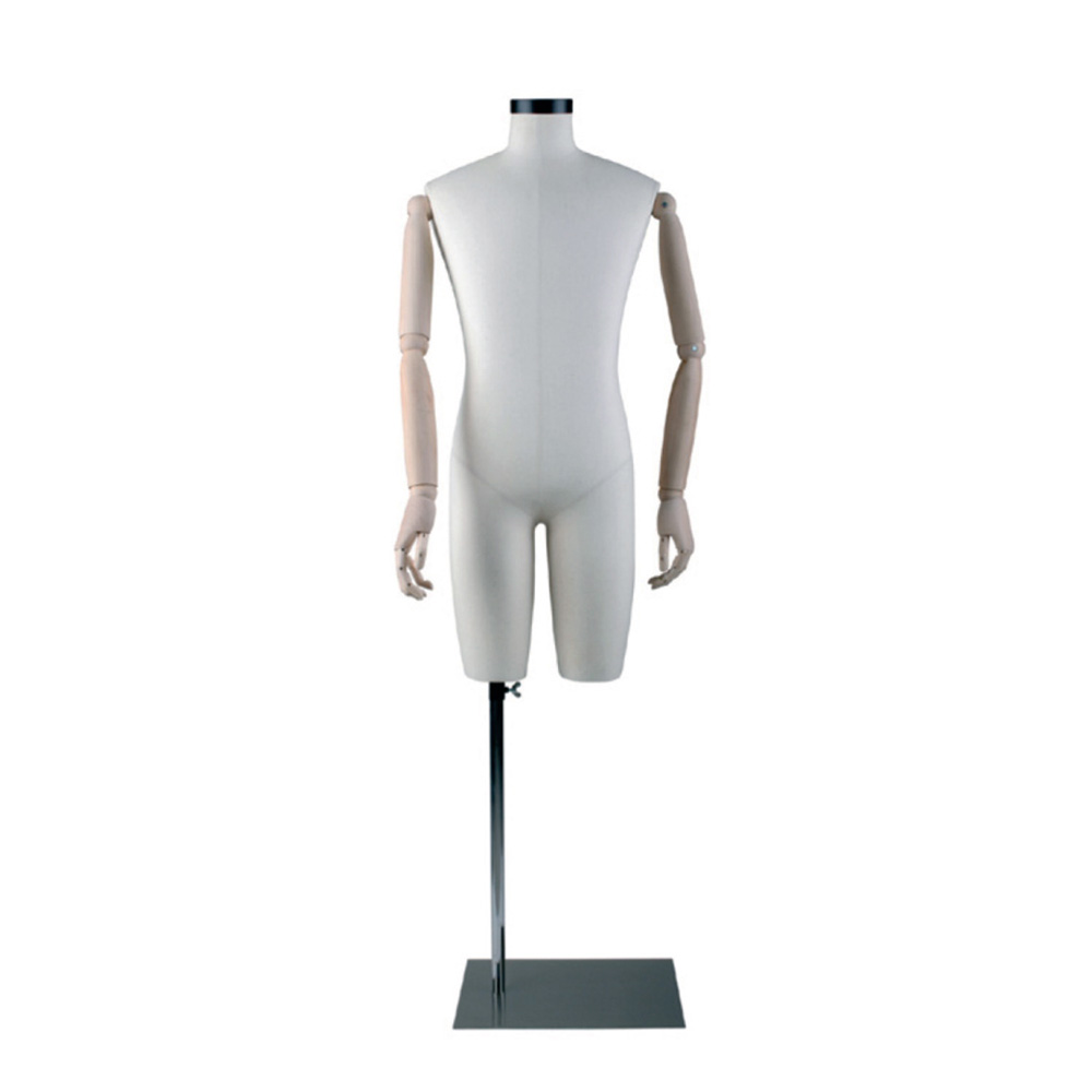 Vintage Ανδρικό μπούστο βιτρίνας μακρύ (μέχρι το μηρό) με επικάλυψη λινού υφάσματος και ξύλινα χέρια.