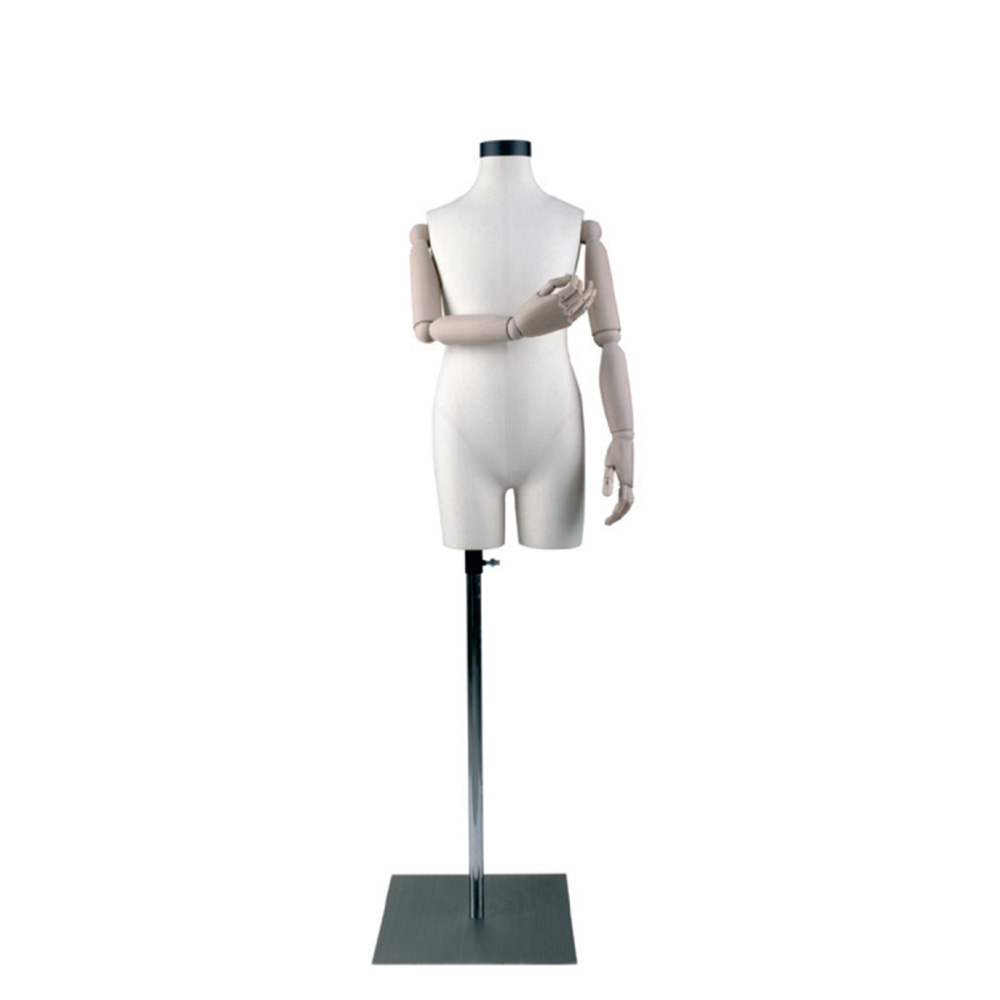Vintage Παιδικό μπούστο βιτρίνας με επικάλυψη λινού υφάσματος και ξύλινα χέρια.
