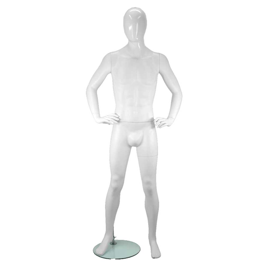 Ανδρική Κούκλα βιτρίνας της σειράς 6th Avenue σε ίσια όρθια στάση, τα χέρια στη μέση, πατούσες στις μύτες. Δάχτυλα χεριών και ποδιών είναι ρεαλιστικά. Είναι κατασκευασμένη από Fiberglass (λεπτές ίνες γυαλιού) ένα υλικό με μεγάλη αντοχή και μικρό βάρος.