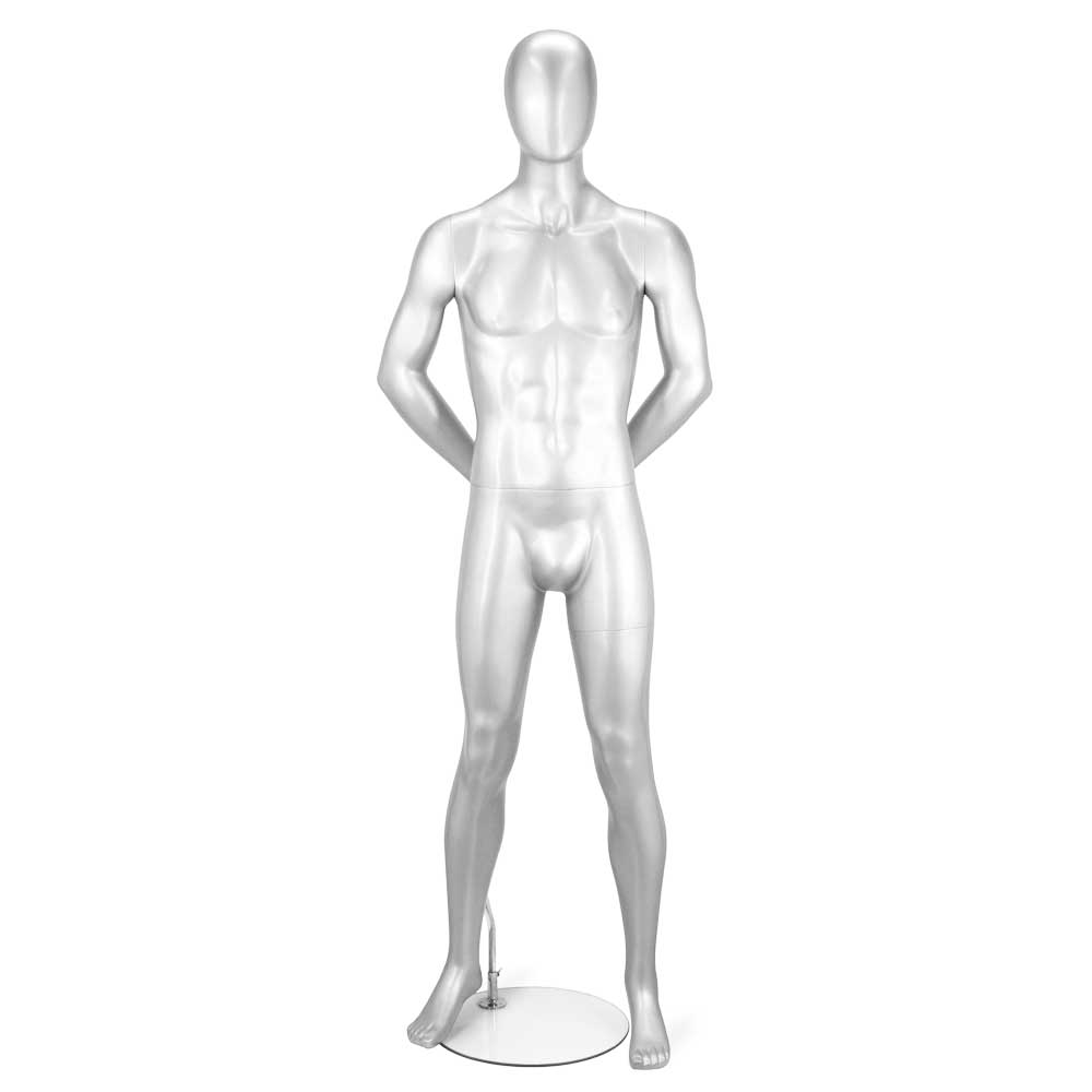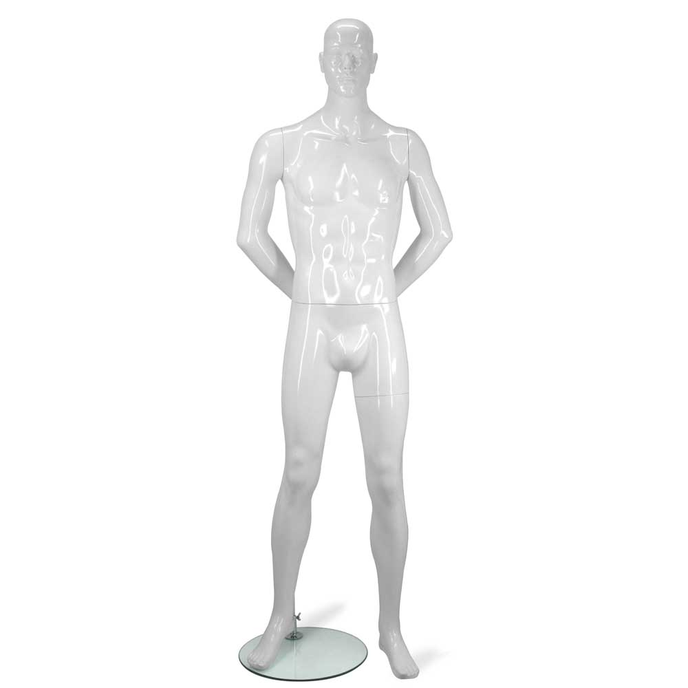Ανδρική Κούκλα βιτρίνας της σειράς 6th Avenue σε ίσια όρθια στάση, τα χέρια πίσω, πατούσες στις μύτες. Δάχτυλα χεριών και ποδιών είναι ρεαλιστικά. Είναι κατασκευασμένη από Fiberglass (λεπτές ίνες γυαλιού) ένα υλικό με μεγάλη αντοχή και μικρό βάρος.