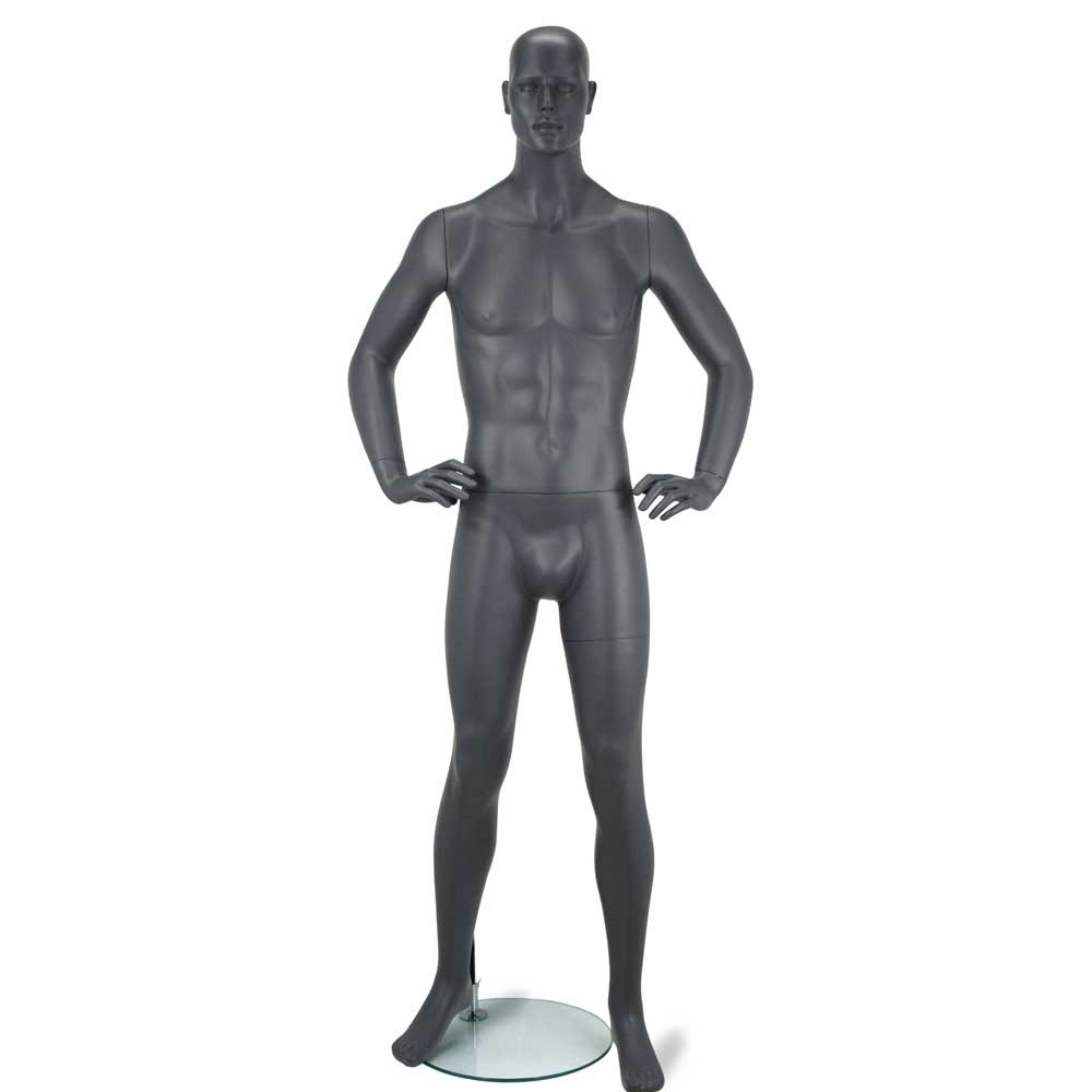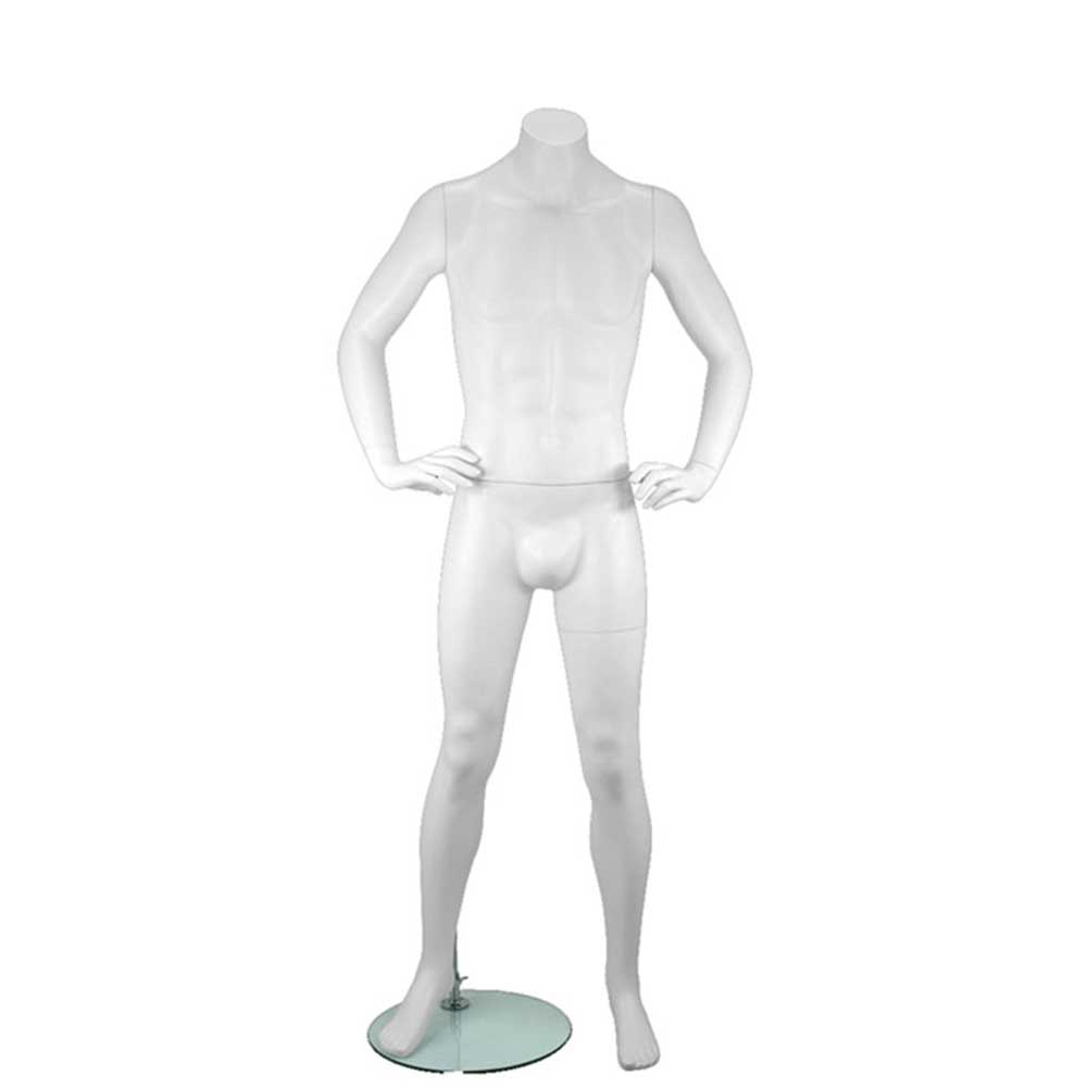 Ακέφαλη Ανδρική Κούκλα βιτρίνας της σειράς 6th Avenue σε ίσια όρθια στάση, τα χέρια στη μέση, πατούσες στις μύτες. Δάχτυλα χεριών και ποδιών είναι ρεαλιστικά. Είναι κατασκευασμένη από Fiberglass (λεπτές ίνες γυαλιού) ένα υλικό με μεγάλη αντοχή και μικρό βάρος.