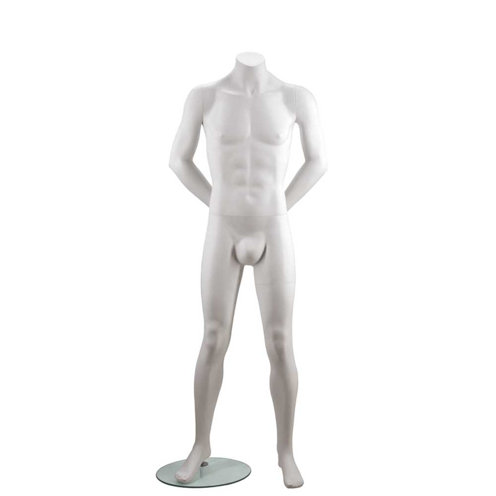 Ακέφαλη Ανδρική Κούκλα βιτρίνας της σειράς 6th Avenue σε ίσια όρθια στάση, τα χέρια πίσω, πατούσες στις μύτες. Δάχτυλα χεριών και ποδιών είναι ρεαλιστικά. Είναι κατασκευασμένη από Fiberglass (λεπτές ίνες γυαλιού) ένα υλικό με μεγάλη αντοχή και μικρό βάρος.