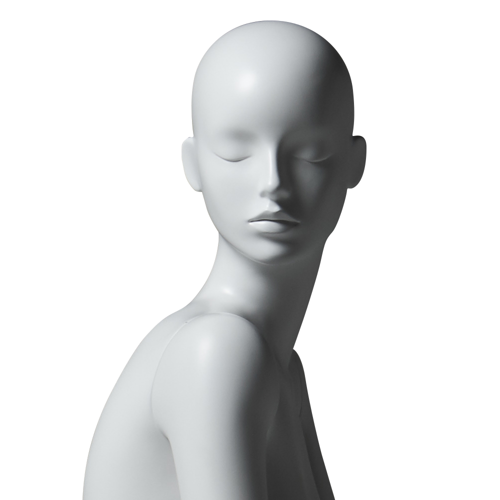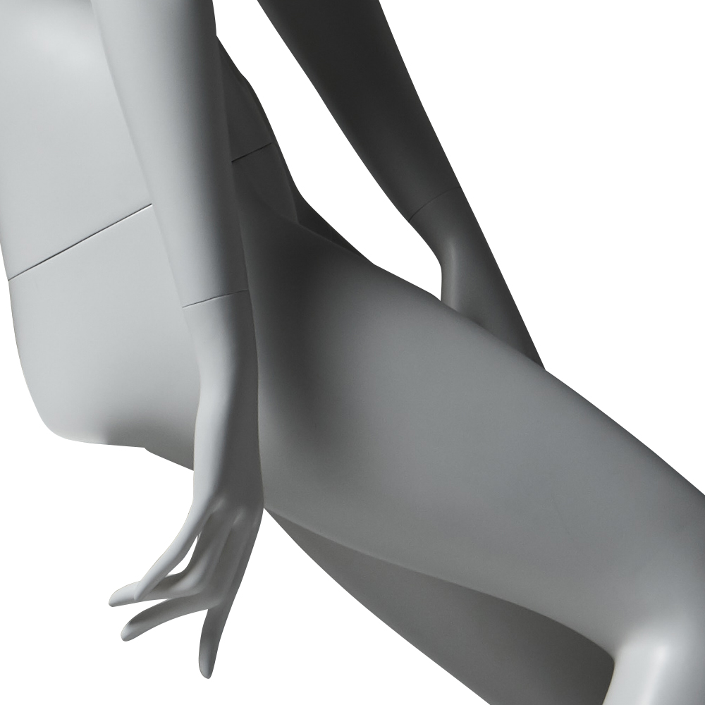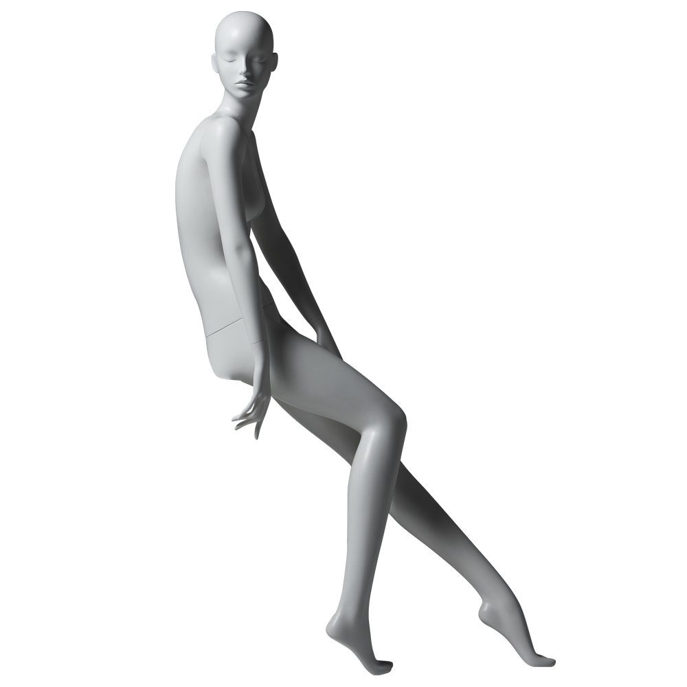 Κούκλα βιτρίνας άμορφη της σειράς Asja σε καθιστή στάση με το δεξί χέρι κάτω και το αριστερό στον αριστερό μηρό, δεξί πόδι λύγισμένο, πατούσες στις μύτες. Το κεφάλι είναι αφαιρετικό - στυλιζαρισμένο (χωρίς πολλά χαρακτηριστικά προσώπου) και κοιτάζει αριστερά. Είναι κατασκευασμένη από Bioresin (οικολογικό υλικό που προέρχεται από οργανικές πρώτες ύλες).