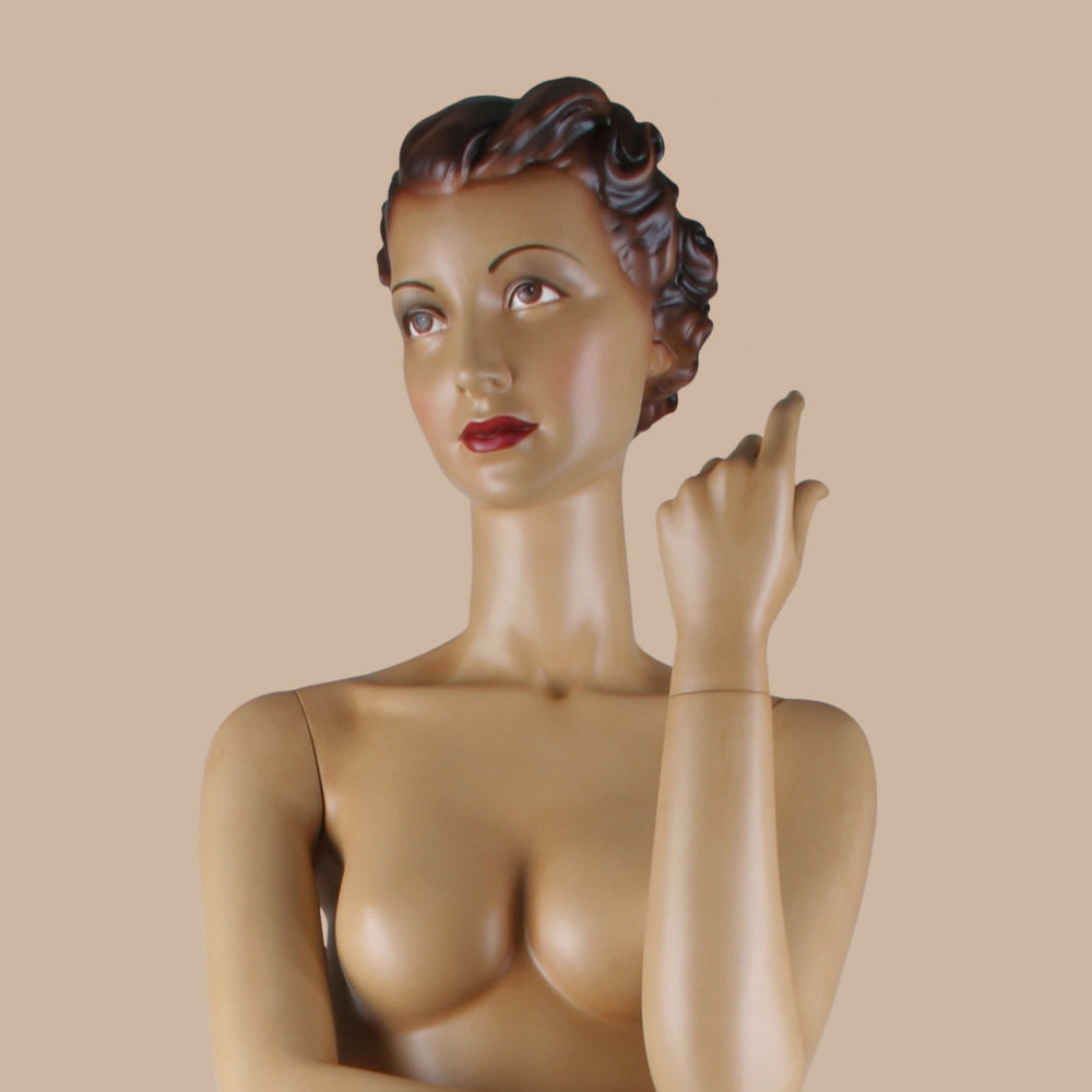 Retro Γυναικεία κούκλα βιτρίνας Pauline με κεφάλι και μαλλί ανάγλυφο (με χαρακτηριστικά προσώπου) σε φυσικό χρώμα του δέρματος και make-up, κατασκευασμένο από fiberglass με retro σχεδιασμό που σε μεταφέρει σε μία άλλη εποχή.