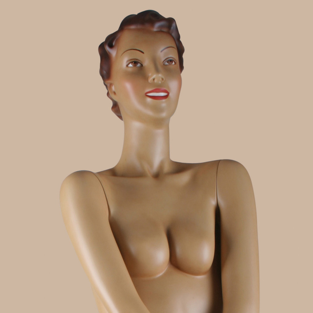 Retro Γυναικεία κούκλα βιτρίνας Agnes με κεφάλι και μαλλί ανάγλυφο (με χαρακτηριστικά προσώπου) σε φυσικό χρώμα του δέρματος και make-up, κατασκευασμένο από fiberglass με retro σχεδιασμό που σε μεταφέρει σε μία άλλη εποχή.