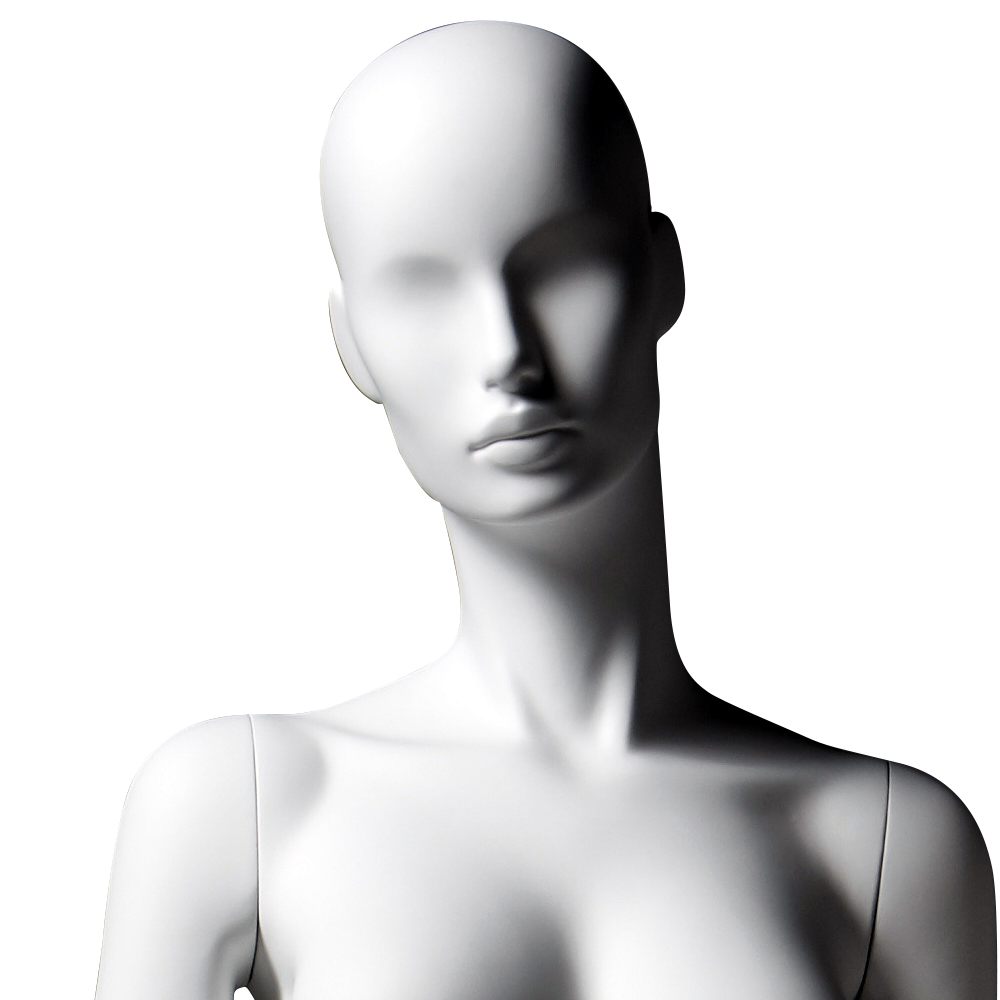 Κούκλα βιτρίνας άμορφη της σειράς Futura σε όρθια στάση με τα χέρια κάτω, δεξιός αγκώνας ελαφρώς λυγισμένος, οι καρποί και τα δάχτυλα των χεριών λυγισμένα, αριστερό πόδι μπροστά από το δεξί (στάση περπατήματος), πατούσες στις μύτες. Το κεφάλι είναι αφαιρετικό - στυλιζαρισμένο (χωρίς πολλά χαρακτηριστικά προσώπου) και κοιτάζει ευθεία. Είναι κατασκευασμένη από Bioresin (οικολογικό υλικό που προέρχεται από οργανικές πρώτες ύλες).