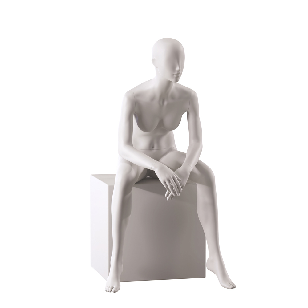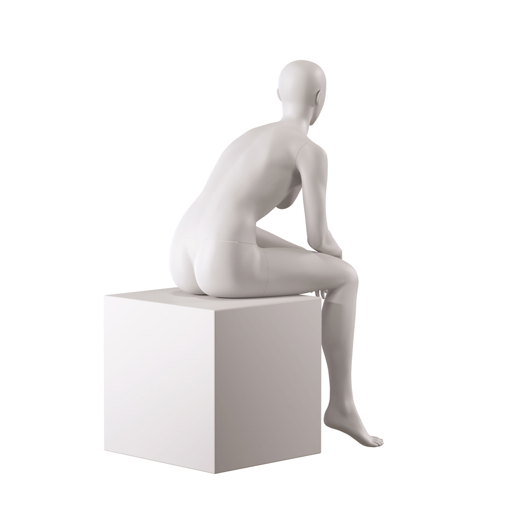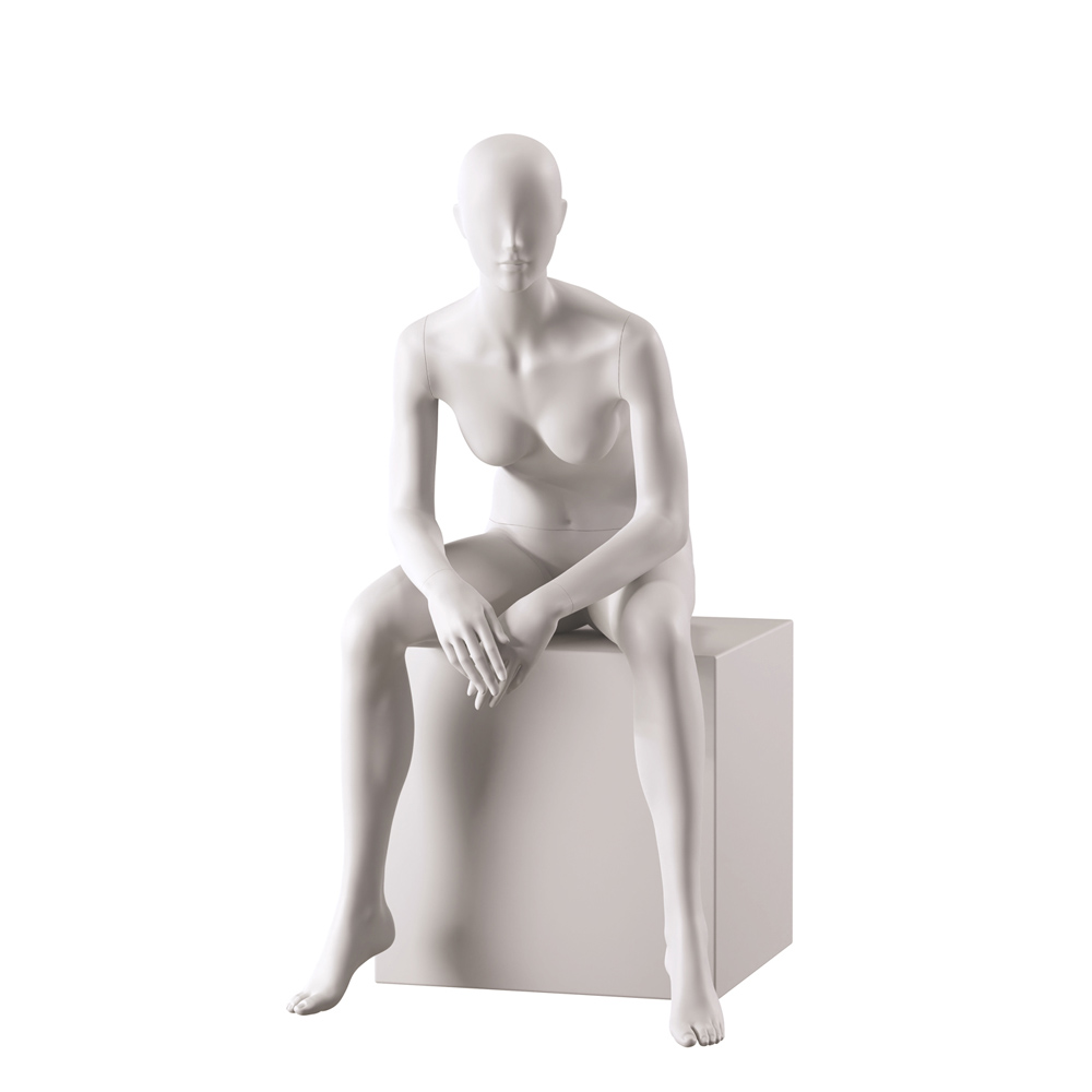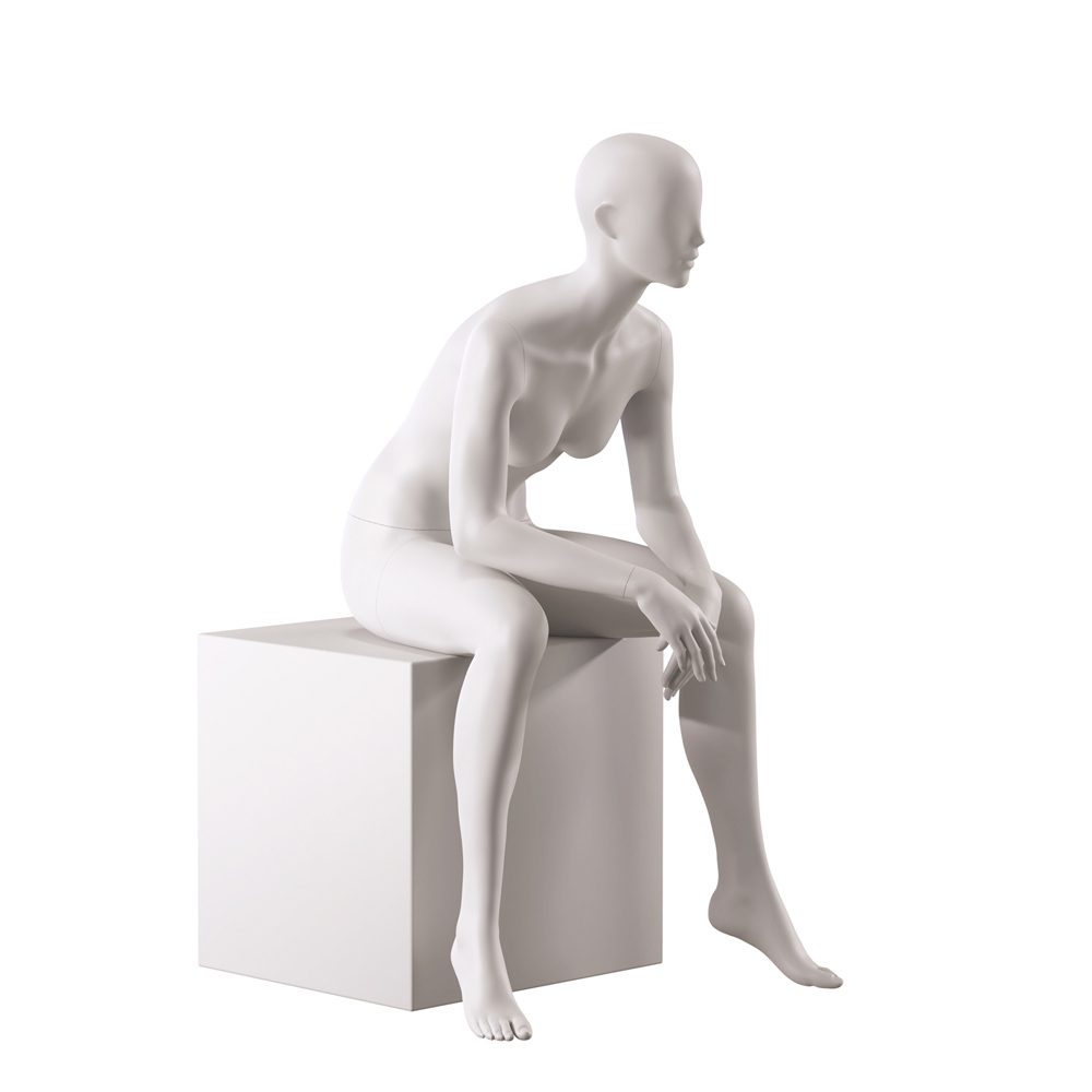 Κούκλα βιτρίνας της σειράς Be Casual σε καθιστή στάση. Με ελάχιστα στυλιζαρισμένα χαρακτηριστικά προσώπου ενώ τα δάχτυλα χεριών και ποδιών είναι ρεαλιστικά. Είναι κατασκευασμένη από Bio Fiberglass (FRP) ανθεκτικό σε γρατζουνιές, με μεγάλη αντοχή και μικρό βάρος.