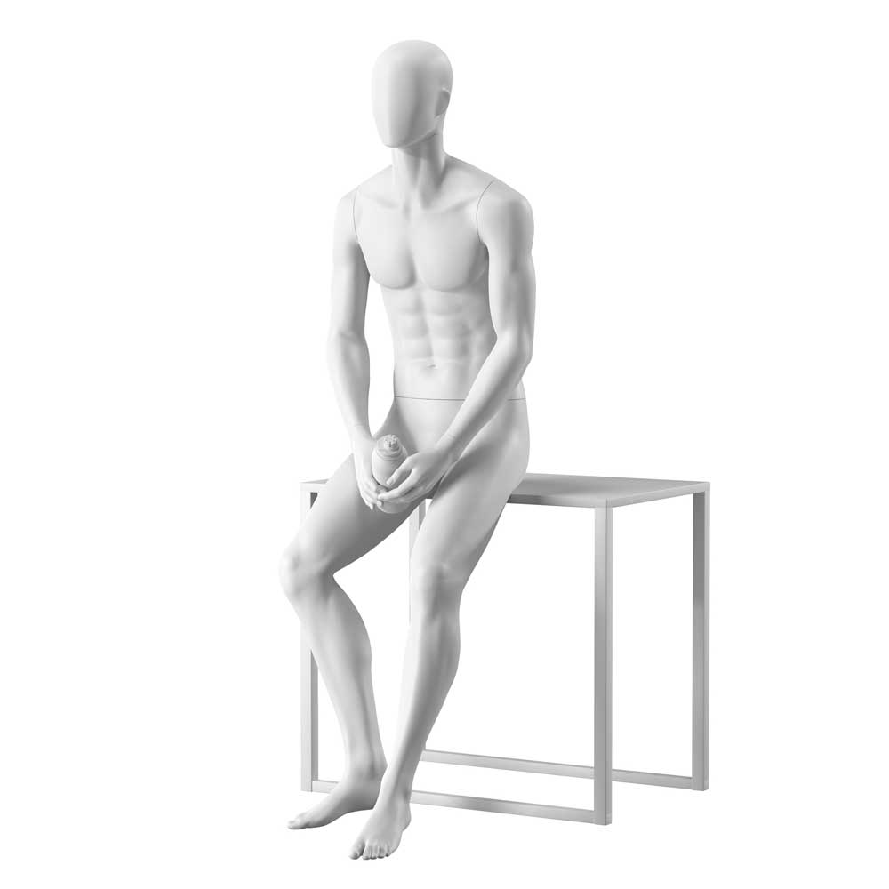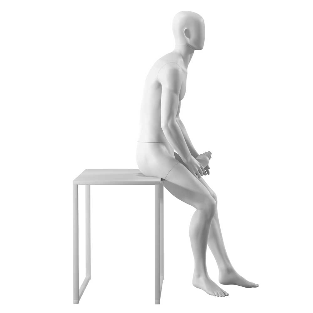 Κούκλα βιτρίνας αφαιρετική της σειράς Urban Collection σε καθιστή στάση. Με αυγοειδές κεφάλι χωρίς χαρακτηριστικά προσώπου. Δάχτυλα χεριών και ποδιών είναι ρεαλιστικά. Είναι κατασκευασμένη από Bio Fiberglass (FRP) ανθεκτικό σε γρατζουνιές, με μεγάλη αντοχή και μικρό βάρος.
