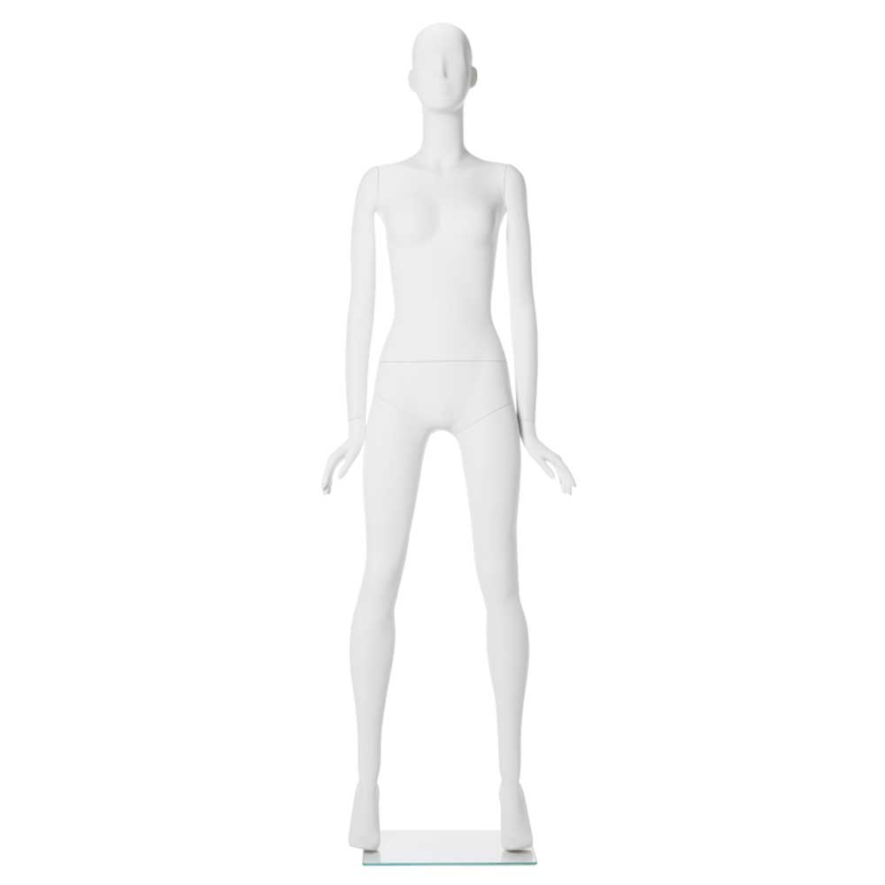 Αφαιρετική Γυναικεία Κούκλα βιτρίνας της σειράς Q Abstract σε όρθια στάση με ελάχιστα στυλιζαρισμένα χαρακτηριστικά. Είναι κατασκευασμένη από ανακυκλωμένο και ανακυκλώσιμο Fiberglass ανθεκτικό σε γρατζουνιές, με μεγάλη αντοχή και μικρό βάρος.