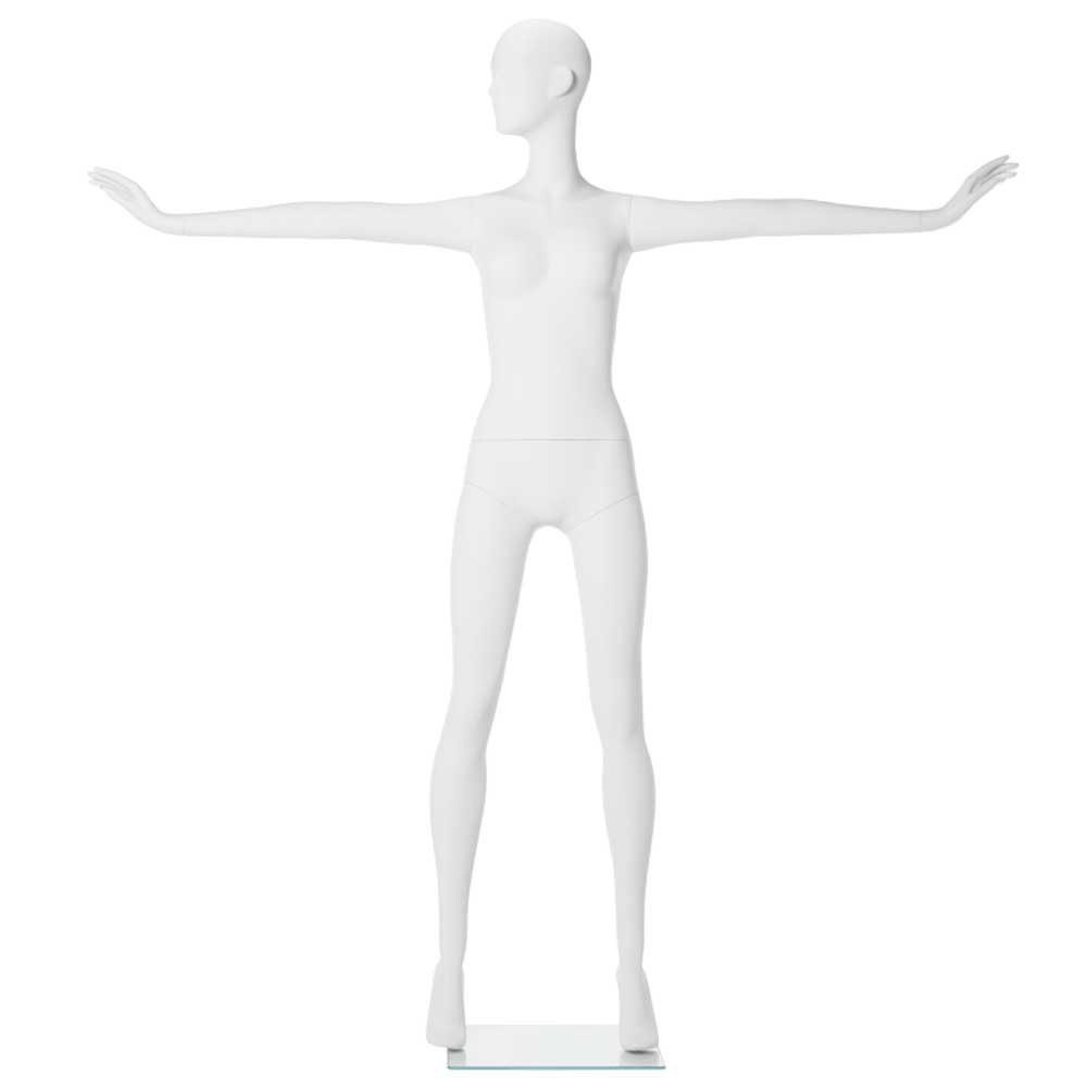 Αφαιρετική Γυναικεία Κούκλα βιτρίνας της σειράς Q Abstract σε όρθια στάση με ελάχιστα στυλιζαρισμένα χαρακτηριστικά. Είναι κατασκευασμένη από ανακυκλωμένο και ανακυκλώσιμο Fiberglass ανθεκτικό σε γρατζουνιές, με μεγάλη αντοχή και μικρό βάρος.