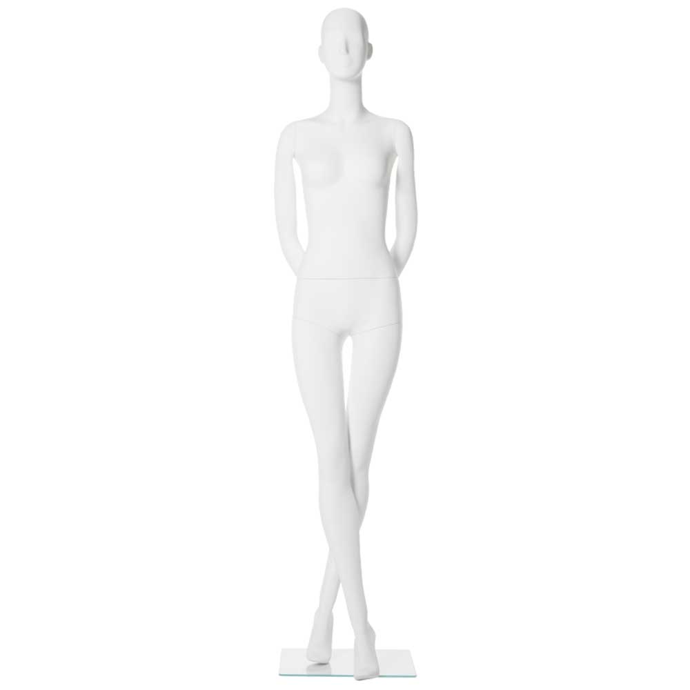 Αφαιρετική Γυναικεία Κούκλα βιτρίνας της σειράς Q Abstract σε όρθια στάση με ελάχιστα στυλιζαρισμένα χαρακτηριστικά. Είναι κατασκευασμένη από ανακυκλωμένο και ανακυκλώσιμο Fiberglass ανθεκτικό σε γρατζουνιές, με μεγάλη αντοχή και μικρό βάρος.