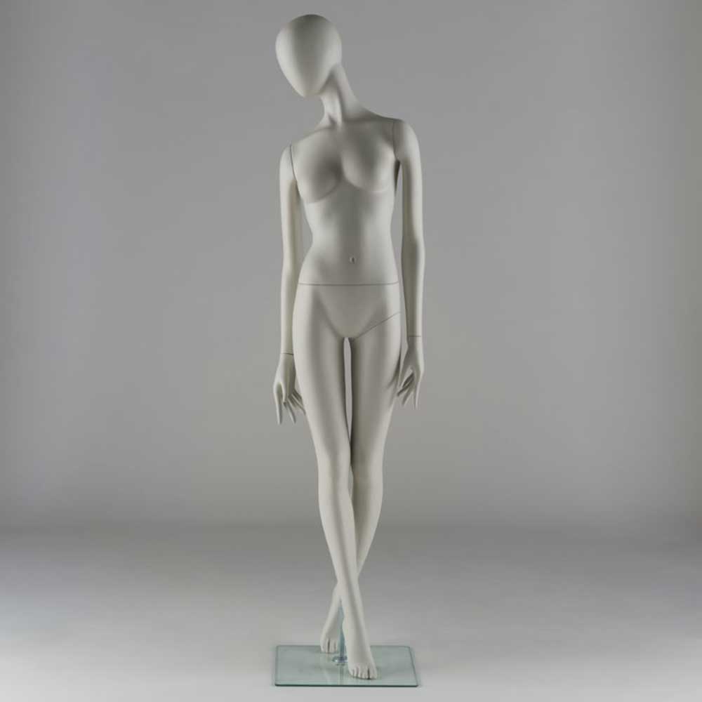 Αφαιρετική Γυναικεία Κούκλα βιτρίνας της σειράς K Abstract σε όρθια στάση χωρίς χαρακτηριστικά. Είναι κατασκευασμένη από ανακυκλωμένο και ανακυκλώσιμο Fiberglass ανθεκτικό σε γρατζουνιές, με μεγάλη αντοχή και μικρό βάρος.