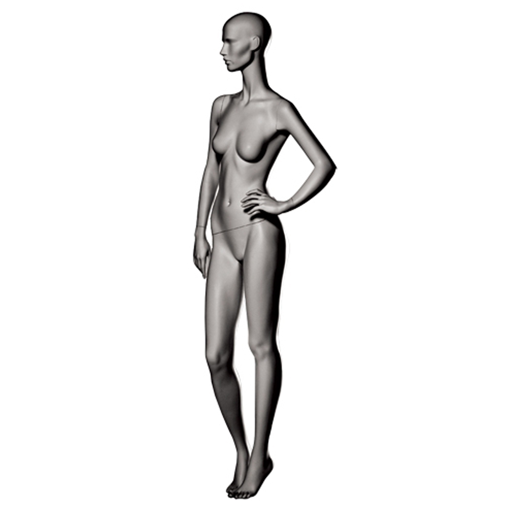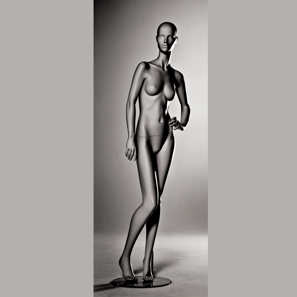Κούκλα βιτρίνας άμορφη της σειράς Stylized 3 σε όρθια στάση φεξί χέρι κάτω και αριστερό στη μέση, δεξί πόδι λυγισμένο ελαφρώς, πατούσες στις μύτες. Το κεφάλι είναι αφαιρετικό - στυλιζαρισμένο (με ελάχιστα χαρακτηριστικά προσώπου) και κοιτάζει μπροστά. Οι λεπτομέρειες στα δάχτυλα χεριών και ποδιών είναι ρεαλιστικές. Είναι κατασκευασμένη από Fiberglass (λεπτές ίνες γυαλιού - ένα υλικό με μεγάλη αντοχή και μικρό βάρος).