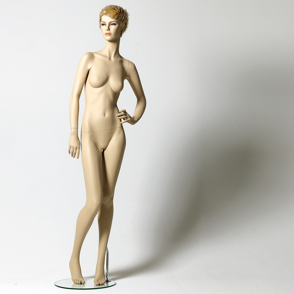 Κούκλα βιτρίνας ρεαλιστική της σειράς Valery σε όρθια στάση φεξί χέρι κάτω και αριστερό στη μέση, δεξί πόδι λυγισμένο ελαφρώς, πατούσες στις μύτες. Το κεφάλι είναι ρεαλιστικό (με χαρακτηριστικά προσώπου και makeup) για χρήση περούκας και κοιτάζει μπροστά. Οι λεπτομέρειες στα δάχτυλα χεριών και ποδιών είναι ρεαλιστικές. Είναι κατασκευασμένη από Fiberglass (λεπτές ίνες γυαλιού - ένα υλικό με μεγάλη αντοχή και μικρό βάρος).