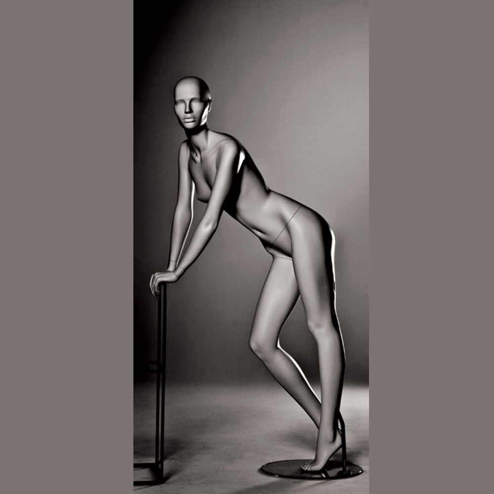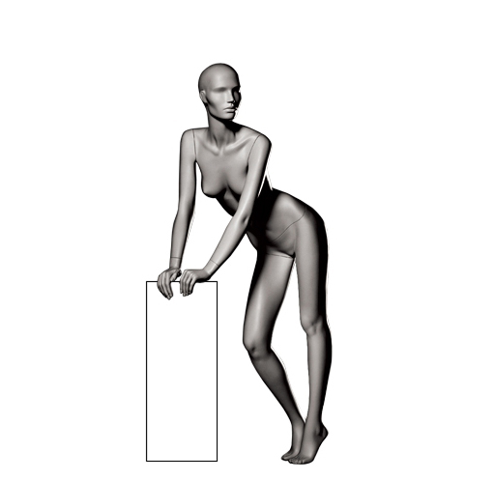 Κούκλα βιτρίνας άμορφη της σειράς Stylized 3 σε όρθια στάση, με κλίση προς τα μπροστά στηριζόμενη στα χέρια, δεξί πόδι λυγισμένο, πατούσες στις μύτες. Το κεφάλι είναι αφαιρετικό - στυλιζαρισμένο (με ελάχιστα χαρακτηριστικά προσώπου) και κοιτάζει αριστερά. Οι λεπτομέρειες στα δάχτυλα χεριών και ποδιών είναι ρεαλιστικές. Είναι κατασκευασμένη από Fiberglass (λεπτές ίνες γυαλιού - ένα υλικό με μεγάλη αντοχή και μικρό βάρος).