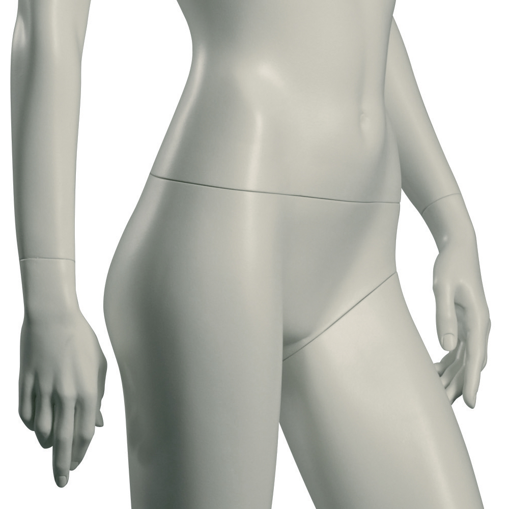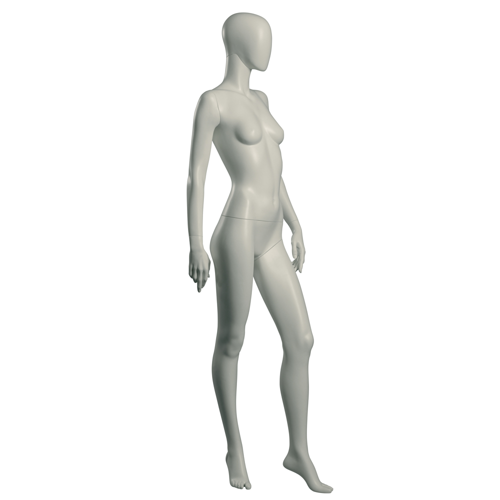 Κούκλα βιτρίνας ρεαλιστική της σειράς Stylized 2 σε όρθια στάση, με τα χέρια κάτω, αριστερό πόδι μπροστά και πατούσες στις μύτες. Το κεφάλι είναι αφαιρετικό - αυγοειδές (χωρίς καθόλου χαρακτηριστικά προσώπου) και κοιτάζει μπροστά. Οι λεπτομέρειες στα δάχτυλα χεριών και ποδιών είναι ρεαλιστικές. Είναι κατασκευασμένη από Fiberglass (λεπτές ίνες γυαλιού - ένα υλικό με μεγάλη αντοχή και μικρό βάρος).