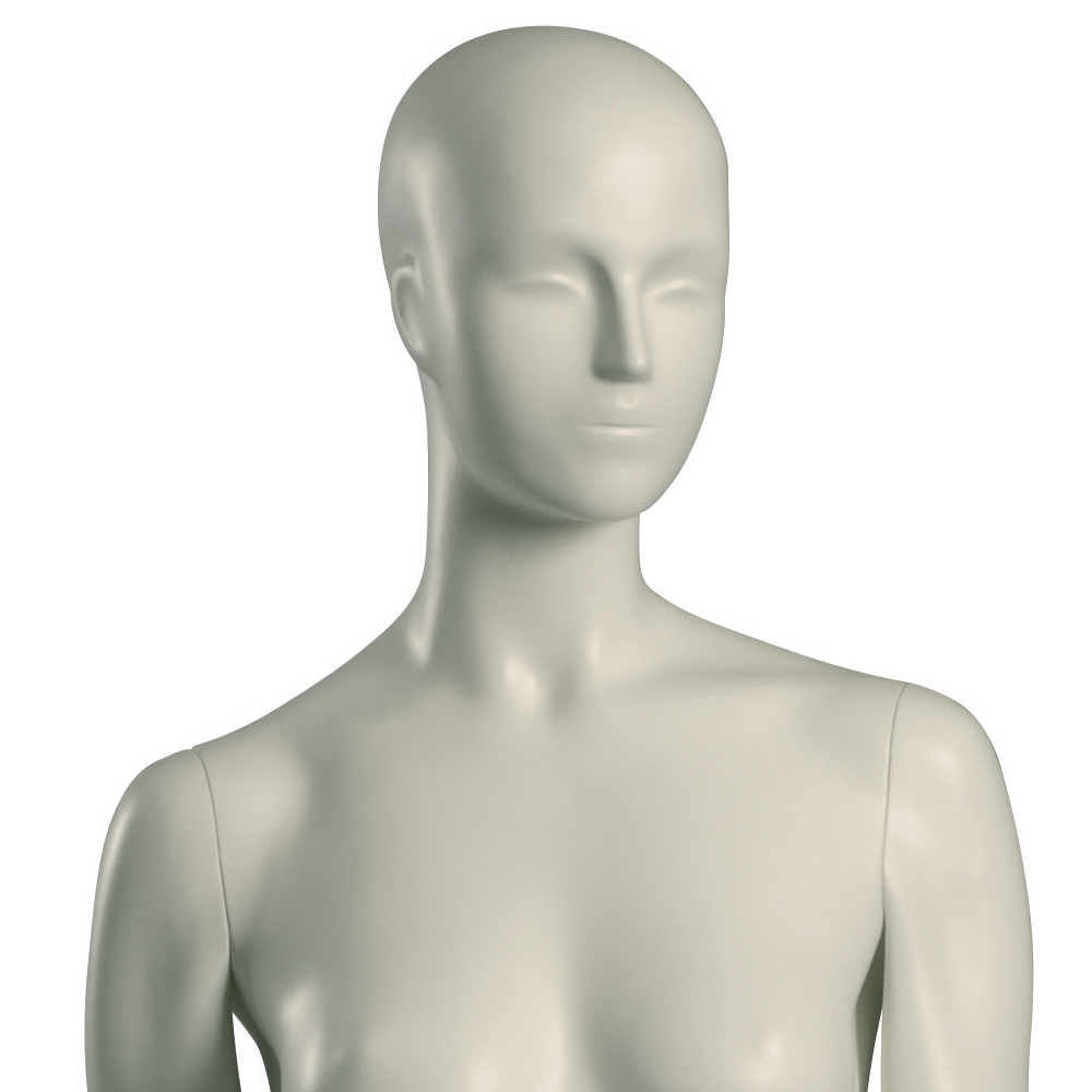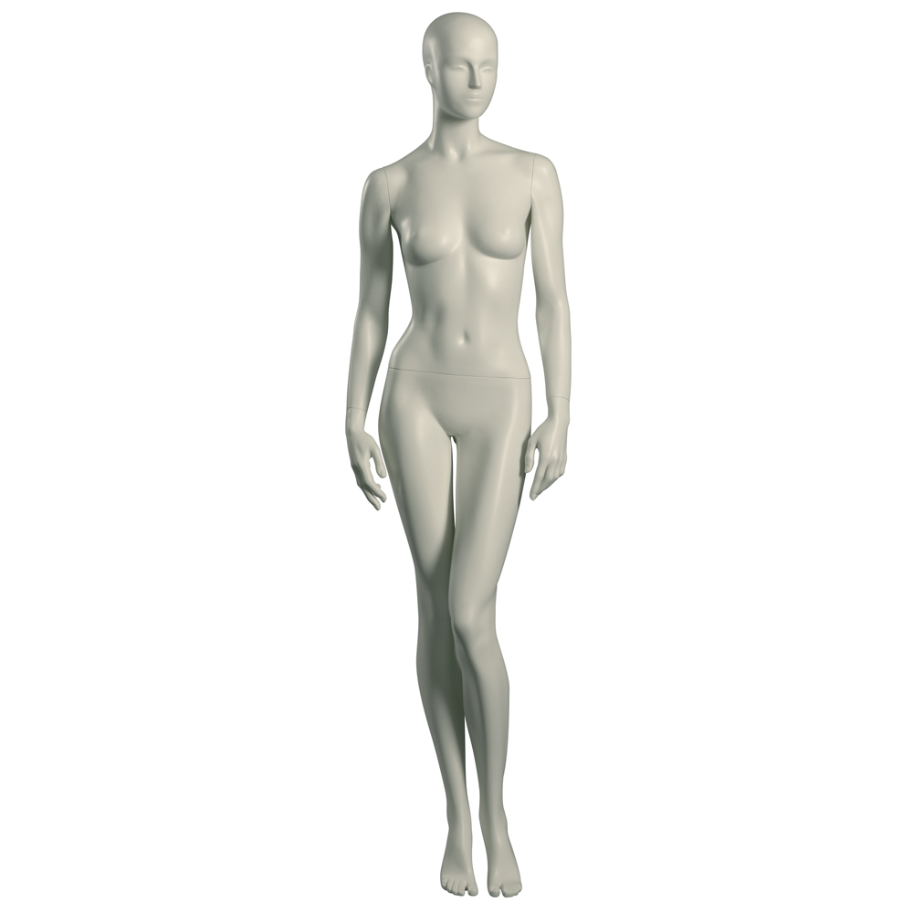 Κούκλα βιτρίνας άμορφη της σειράς Stylized 1 σε όρθια στάση, με τα χέρια κάτω, αριστερό πόδι ελαφρώς λυγισμένο και πατούσες στις μύτες. Το κεφάλι είναι αφαιρετικό - στυλιζαρισμένο (με ελάχιστα χαρακτηριστικά προσώπου) και κοιτάζει μπροστά. Οι λεπτομέρειες στα δάχτυλα χεριών και ποδιών είναι ρεαλιστικές. Είναι κατασκευασμένη από Fiberglass (λεπτές ίνες γυαλιού - ένα υλικό με μεγάλη αντοχή και μικρό βάρος).