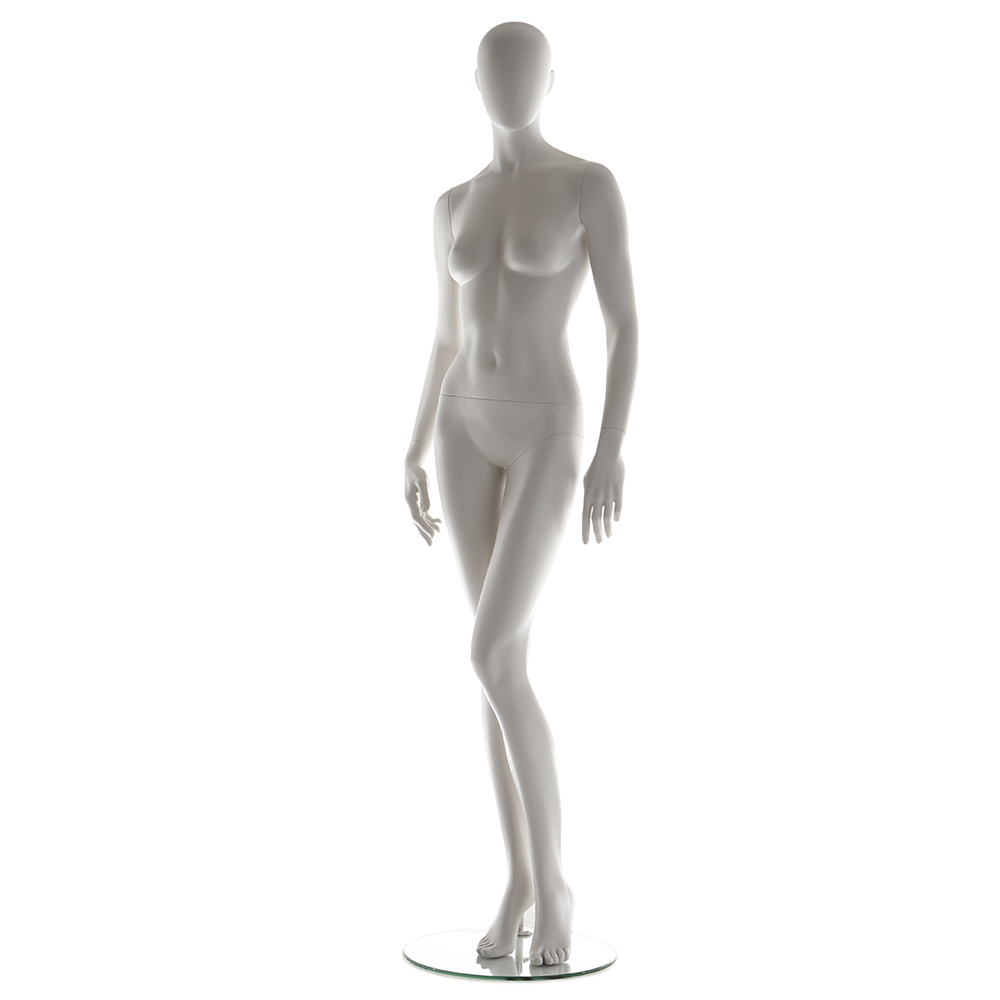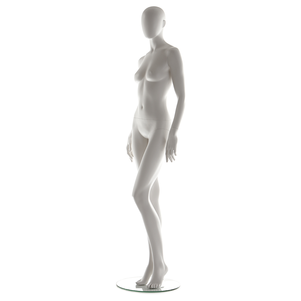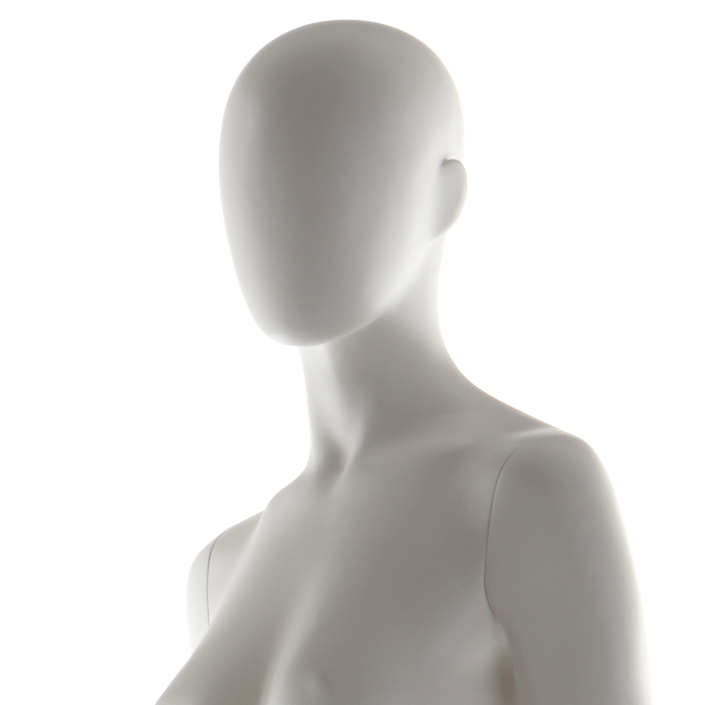 Κούκλα βιτρίνας άμορφη της σειράς Stylized Zero σε όρθια στάση, με τα χέρια κάτω, αριστερό πόδι ελαφρώς λυγισμένο και πατούσες στις μύτες. Το κεφάλι είναι αφαιρετικό - αυγοειδές (χωρίς καθόλου χαρακτηριστικά προσώπου) και κοιτάζει μπροστά. Οι λεπτομέρειες στα δάχτυλα χεριών και ποδιών είναι ρεαλιστικές. Είναι κατασκευασμένη από Fiberglass (λεπτές ίνες γυαλιού - ένα υλικό με μεγάλη αντοχή και μικρό βάρος).