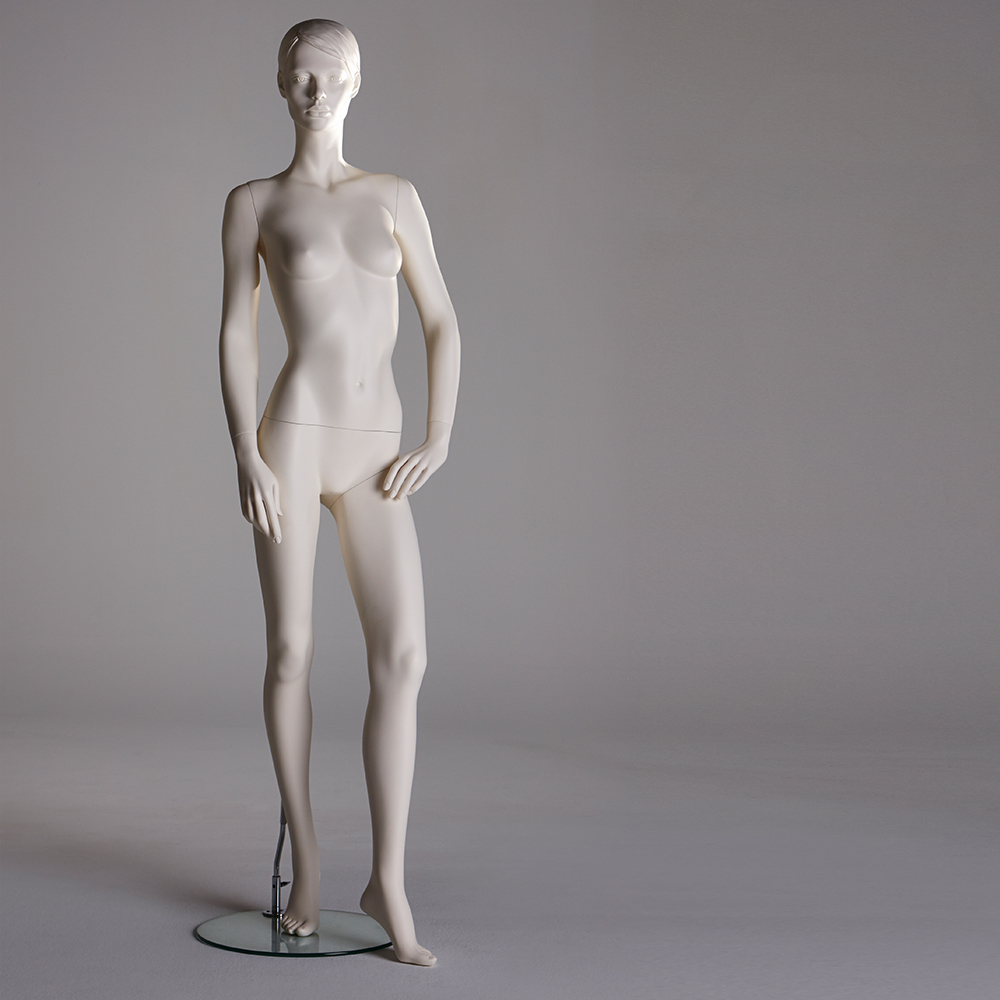 Κούκλα βιτρίνας με ανάγλυφο κεφάλι της σειράς Uma σε όρθια στάση, με το δεξί χέρι ελαφρώς λυγισμένο, αριστερό πόδι ελαφρώς λυγισμένο και πατούσες στις μύτες. Το κεφάλι είναι ανάγλυφο (με ανάγλυφο μαλλί, χαρακτηριστικά προσώπου χωρίς makeup) και κοιτάζει μπροστά. Οι λεπτομέρειες στα δάχτυλα χεριών και ποδιών είναι ρεαλιστικές. Είναι κατασκευασμένη από Fiberglass (λεπτές ίνες γυαλιού - ένα υλικό με μεγάλη αντοχή και μικρό βάρος).