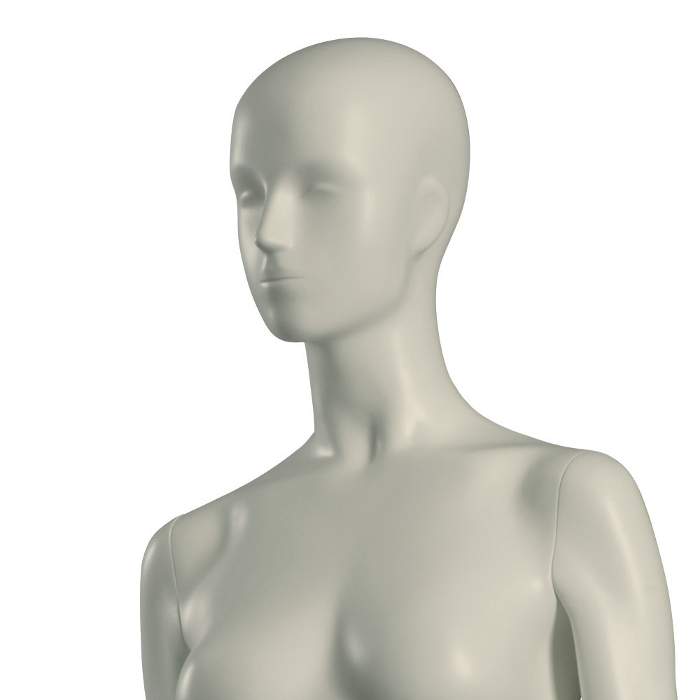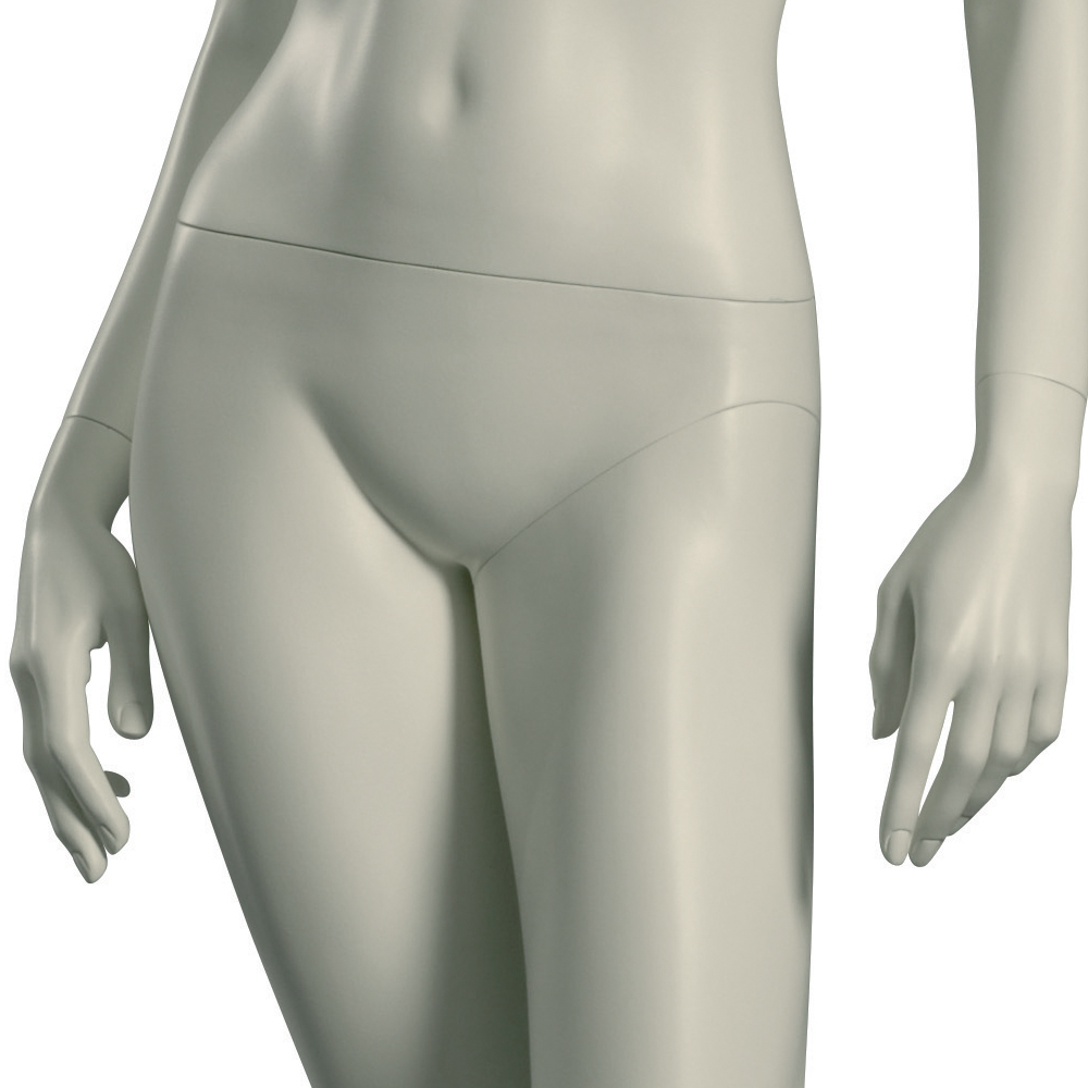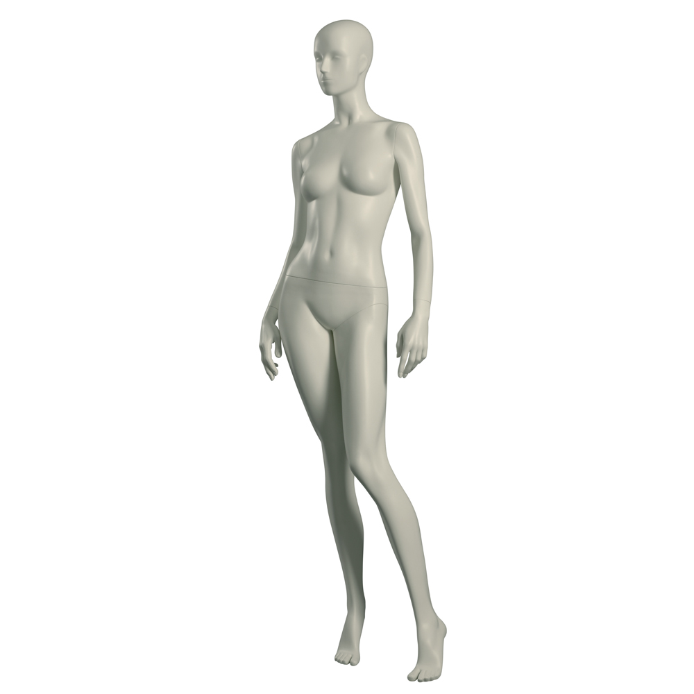 Κούκλα βιτρίνας άμορφη της σειράς Stylized 1 σε όρθια στάση, με τα χέρια κάτω, μικρή κάμψη μέσης και πατούσες στις μύτες. Το κεφάλι είναι αφαιρετικό - στιλιζαρισμένο (με ελάχιστα χαρακτηριστικά προσώπου) και κοιτάζει μπροστά. Οι λεπτομέρειες στα δάχτυλα χεριών και ποδιών είναι ρεαλιστικές. Είναι κατασκευασμένη από Fiberglass (λεπτές ίνες γυαλιού - ένα υλικό με μεγάλη αντοχή και μικρό βάρος).