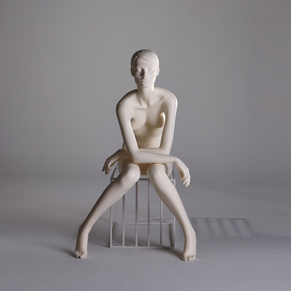 Κούκλα βιτρίνας με ανάγλυφο κεφάλι της σειράς Uma σε καθιστή στάση, με τους πήχεις στα γόνατα, τα πόδια προς τα έξω και πατούσες στις μύτες. Το κεφάλι είναι ανάγλυφο (με ανάγλυφο μαλλί, χαρακτηριστικά προσώπου χωρίς makeup) και κοιτάζει μπροστά. Οι λεπτομέρειες στα δάχτυλα χεριών και ποδιών είναι ρεαλιστικές. Είναι κατασκευασμένη από Fiberglass (λεπτές ίνες γυαλιού - ένα υλικό με μεγάλη αντοχή και μικρό βάρος).
