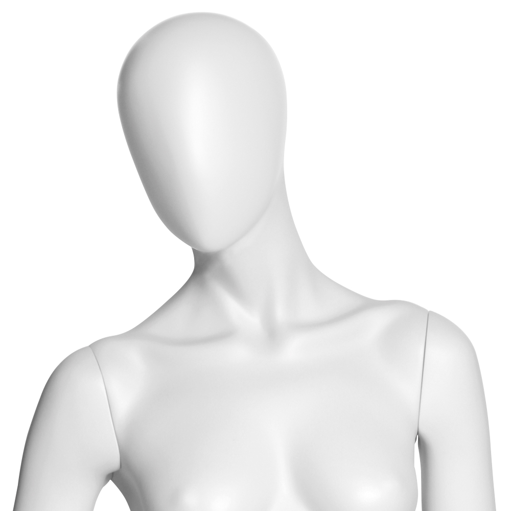 Κούκλα βιτρίνας της σειράς Tough Raw σε ίσια όρθια στάση. To κεφάλι είναι αυγοειδές (χωρίς καθόλου χαρακτηριστικά προσώπου) και κοιτάει ελαφρώς δεξιά, δεξιός αγκώνας λυγισμένος και αριστερό χέρι κάτω, τα πόδια σε μικρή διάσταση και πατούσες στις μύτες. Δάχτυλα χεριών και ποδιών είναι ρεαλιστικά. Είναι κατασκευασμένη από Fiberglass (λεπτές ίνες γυαλιού) ένα υλικό με μεγάλη αντοχή και μικρό βάρος.