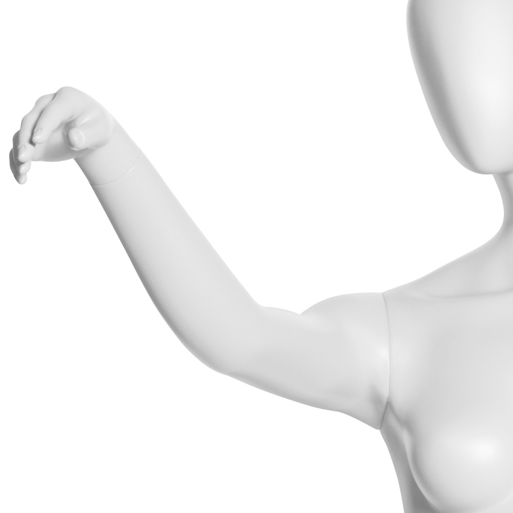 Κούκλα βιτρίνας της σειράς Tough Raw σε ίσια όρθια στάση. To κεφάλι είναι αυγοειδές (χωρίς καθόλου χαρακτηριστικά προσώπου) και κοιτάει ευθεία, δεξί χέρι σηκωμένο, τα πόδια ίσια και πατούσες στις μύτες. Δάχτυλα χεριών και ποδιών είναι ρεαλιστικά. Είναι κατασκευασμένη από Fiberglass (λεπτές ίνες γυαλιού) ένα υλικό με μεγάλη αντοχή και μικρό βάρος.