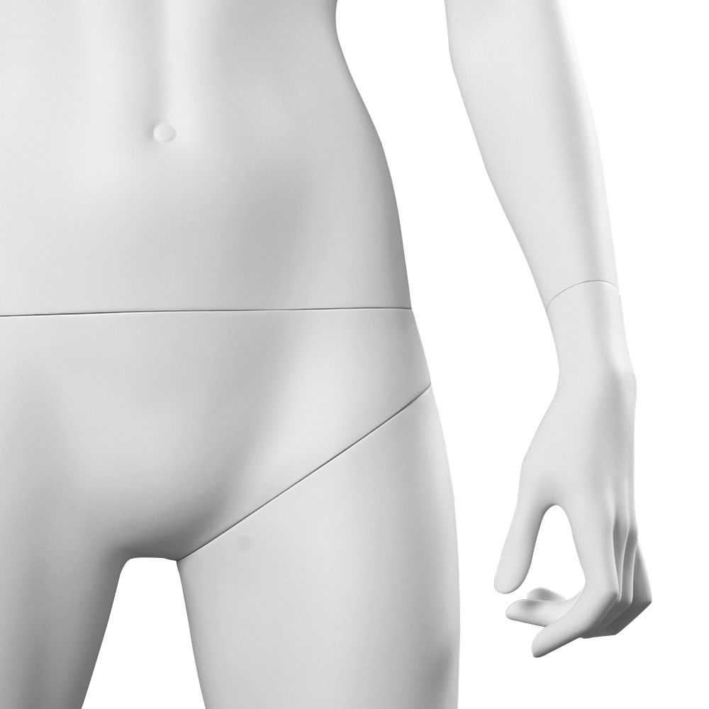 Κούκλα βιτρίνας της σειράς Prêt-à-Porter σε ίσια όρθια στάση, το κεφάλι κοιτάει ευθεία, τα χέρια κάτω με δάχτυλα κλειστά, πόδια σε μικρή διάσταση και πατούσες στις μύτες. Δάχτυλα χεριών και ποδιών στυλιζαρισμένα. Είναι κατασκευασμένη από Fiberglass (λεπτές ίνες γυαλιού) ένα υλικό με μεγάλη αντοχή και μικρό βάρος.