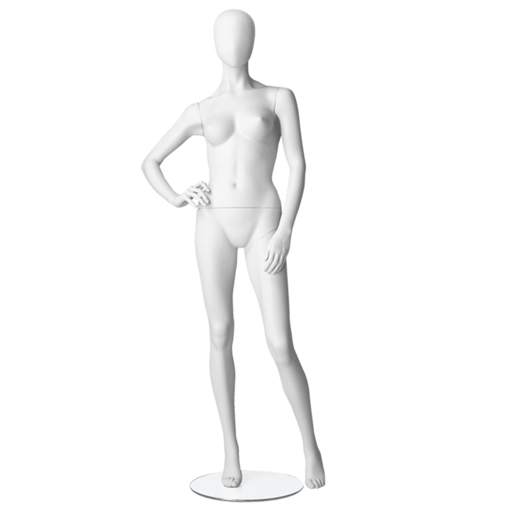 Κούκλα βιτρίνας της σειράς Youth Club Abstract σε ίσια όρθια στάση. To κεφάλι είναι αυγοειδές (χωρίς καθόλου χαρακτηριστικά προσώπου) και κοιτάει ευθεία, δεξί χέρι στη μέση, πόδια σε μικρή διάσταση και πατούσες στις μύτες. Δάχτυλα χεριών και ποδιών είναι ρεαλιστικά. Είναι κατασκευασμένη από Fiberglass (λεπτές ίνες γυαλιού) ένα υλικό με μεγάλη αντοχή και μικρό βάρος.