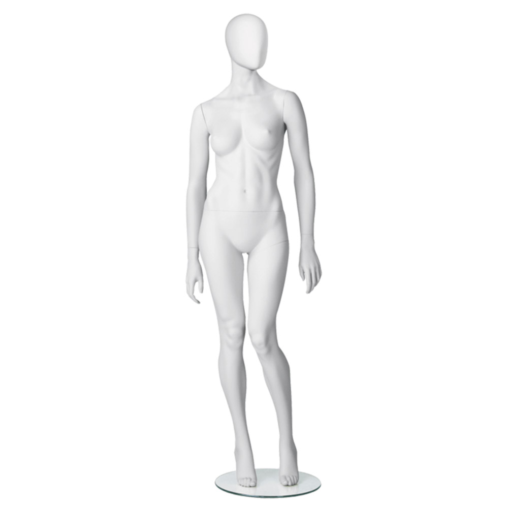 Κούκλα βιτρίνας της σειράς Uptown Girls Abstract Collection σε ίσια όρθια στάση. To κεφάλι είναι αυγοειδές (χωρίς καθόλου χαρακτηριστικά προσώπου) και κοιτάει αριστερά, τα χέρια κάτω, αριστερό πόδι ελαφρώς λυγισμένο και πατούσες στις μύτες. Δάχτυλα χεριών και ποδιών είναι ρεαλιστικά. Είναι κατασκευασμένη από Fiberglass (λεπτές ίνες γυαλιού) ένα υλικό με μεγάλη αντοχή και μικρό βάρος.