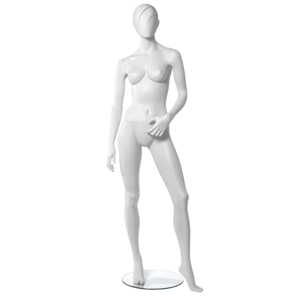 Κούκλα βιτρίνας της σειράς Chelsea Girls Abstract Collection σε ίσια όρθια στάση. To κεφάλι είναι αυγοειδές (χωρίς καθόλου χαρακτηριστικά προσώπου) και κοιτάει ευθεία, δεχί χέρι κάτω και αριστερό μπροστάη, αριστερό πόδι ελαφρώς λυγισμένο και πατούσες στις μύτες. Δάχτυλα χεριών και ποδιών είναι ρεαλιστικά. Είναι κατασκευασμένη από Fiberglass (λεπτές ίνες γυαλιού) ένα υλικό με μεγάλη αντοχή και μικρό βάρος.