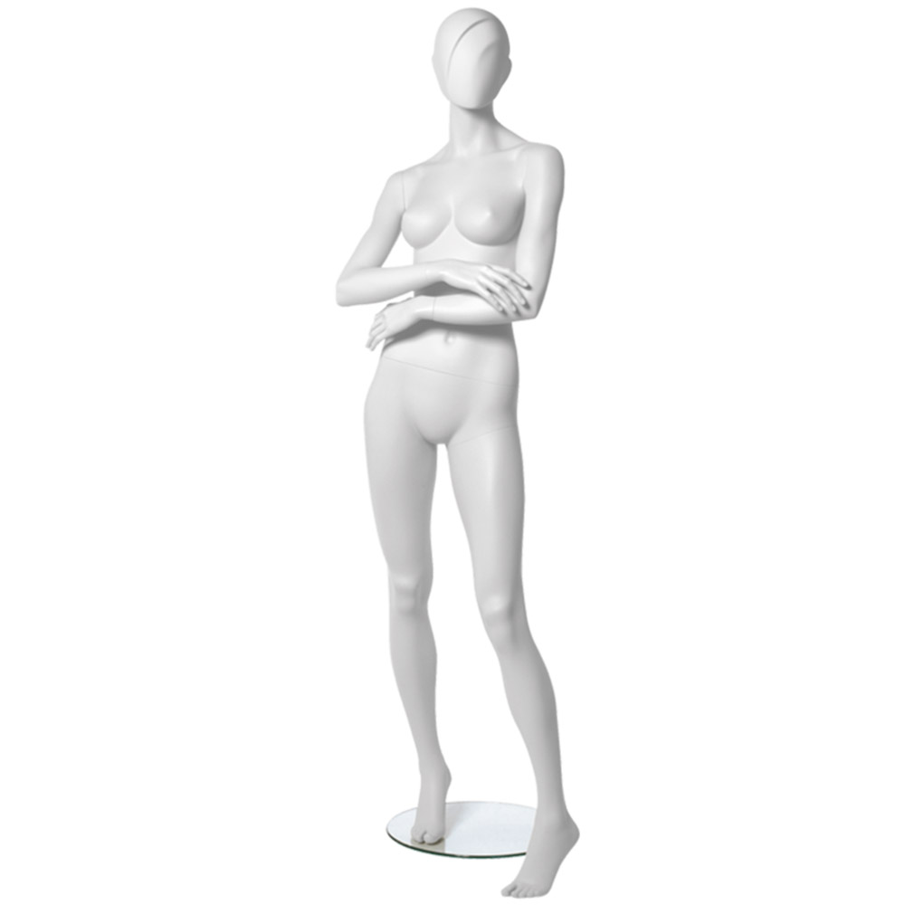 Κούκλα βιτρίνας της σειράς Chelsea Girls Abstract Collection σε ίσια όρθια στάση. To κεφάλι είναι αυγοειδές (χωρίς καθόλου χαρακτηριστικά προσώπου) και κοιτάει ευθεία, χέρια σταυρωμέρνα, πόδια σε μικρή διάσταση, πατούσες στις μύτες. Δάχτυλα χεριών και ποδιών είναι ρεαλιστικά. Είναι κατασκευασμένη από Fiberglass (λεπτές ίνες γυαλιού) ένα υλικό με μεγάλη αντοχή και μικρό βάρος.
