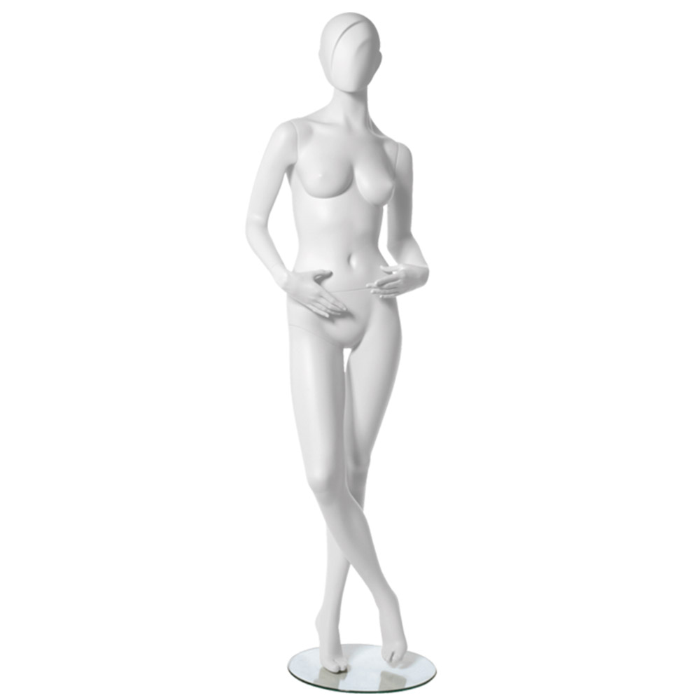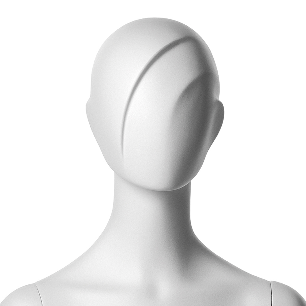 Κούκλα βιτρίνας της σειράς Chelsea Girls Abstract Collection σε όρθια στάση. To κεφάλι είναι αυγοειδές (χωρίς καθόλου χαρακτηριστικά προσώπου) και κοιτάει ευθεία, τα χέρια μπροστά με καρπούς λυγισμένους, δεξί γόνατο μπροστά από το αριστερό (σταυρωτά), πατούσες στις μύτες. Δάχτυλα χεριών και ποδιών είναι ρεαλιστικά. Είναι κατασκευασμένη από Fiberglass (λεπτές ίνες γυαλιού) ένα υλικό με μεγάλη αντοχή και μικρό βάρος.