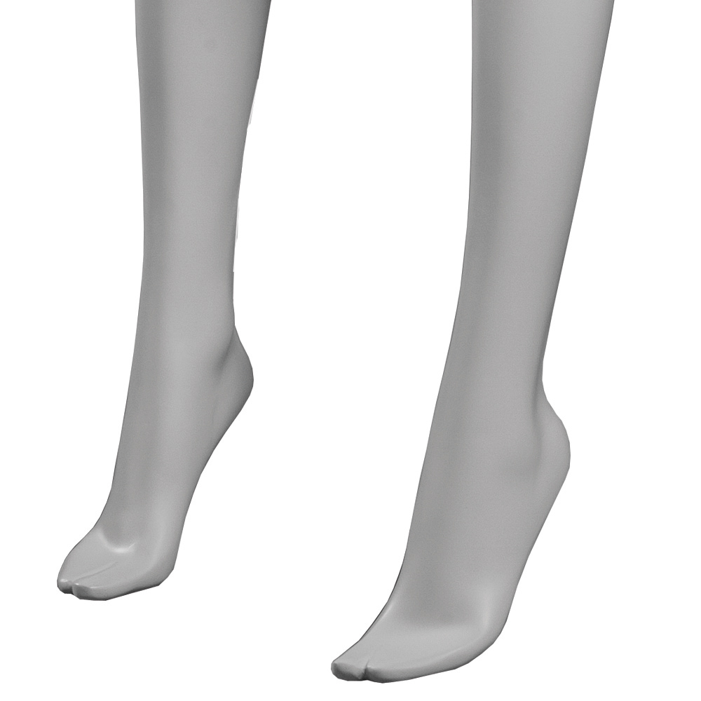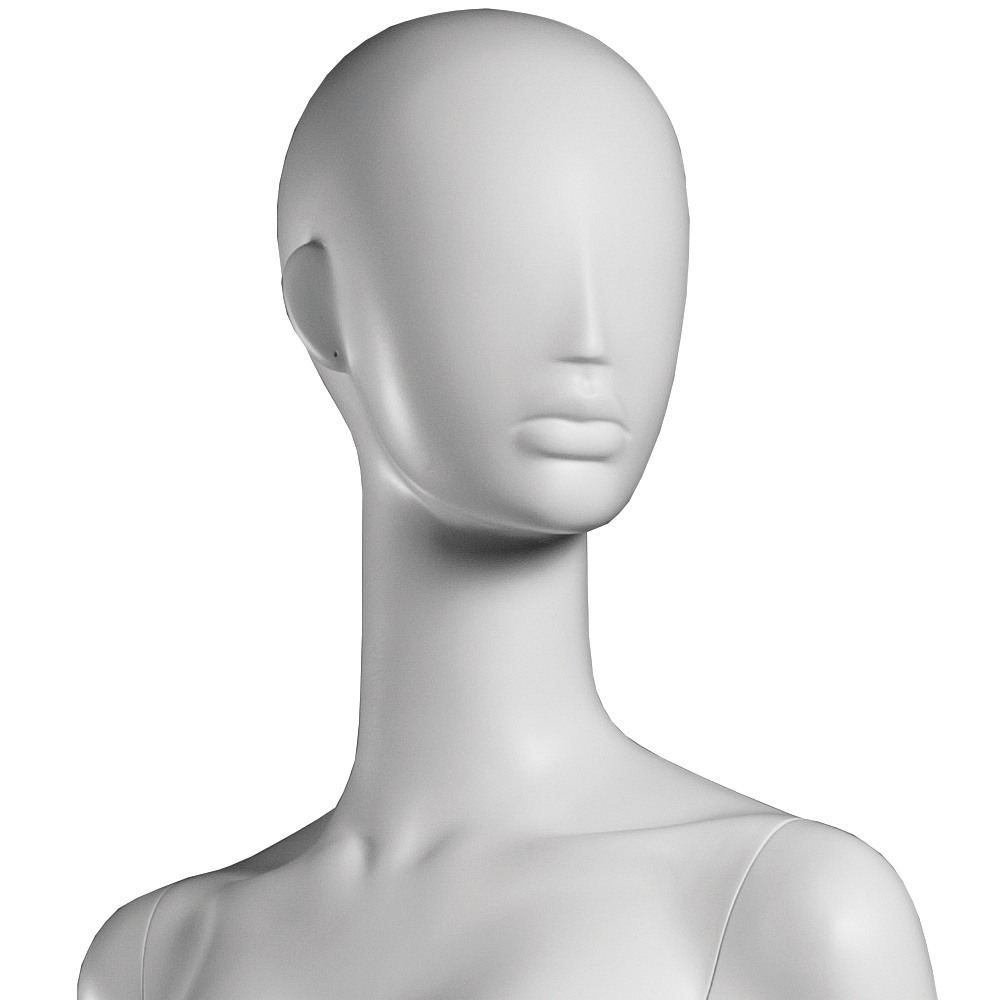 Κούκλα βιτρίνας άμορφη της σειράς Ophelia σε όρθια στάση, με τα χέρια πίσω, πόδια στο άνοιγμα των γοφών και πατούσες στις μύτες. Το κεφάλι είναι αφαιρετικό - στυλιζαρισμένο (χωρίς πολλά χαρακτηριστικά προσώπου) και κοιτάζει αριστερά. Είναι κατασκευασμένη από Fiberglass (λεπτές ίνες γυαλιού) ένα υλικό με μεγάλη αντοχή και μικρό βάρος.