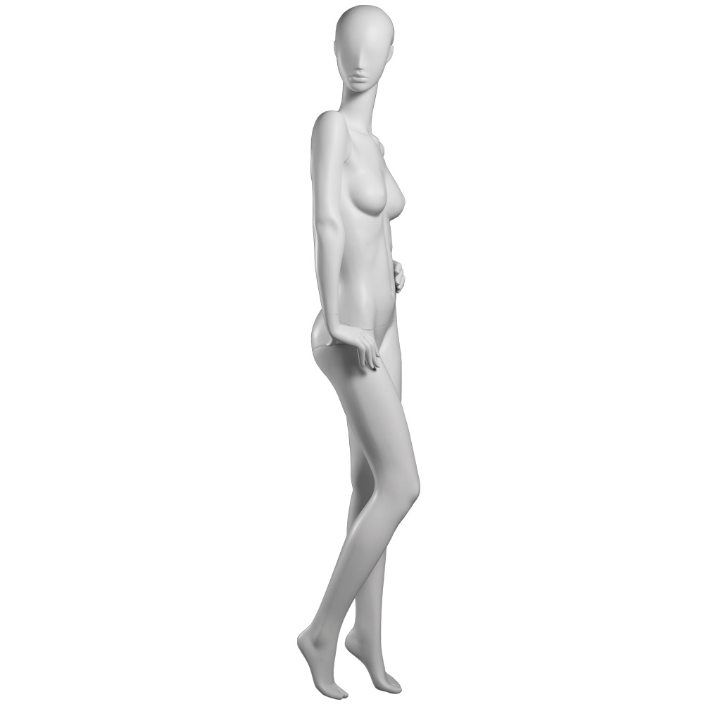 Κούκλα βιτρίνας άμορφη της σειράς Ophelia σε όρθια στάση, με το αριστερό χέρι στη μέση και το δεξί στο γοφό, το δεξί πόδι ελαφρώς λυγισμένο και πατούσες στις μύτες. Το κεφάλι αφαιρετικό - στυλιζαρισμένο κεφάλι (χωρίς πολλά χαρακτηριστικά προσώπου) και κοιτάει αριστερά. Είναι κατασκευασμένη από Fiberglass (λεπτές ίνες γυαλιού) ένα υλικό με μεγάλη αντοχή και μικρό βάρος.