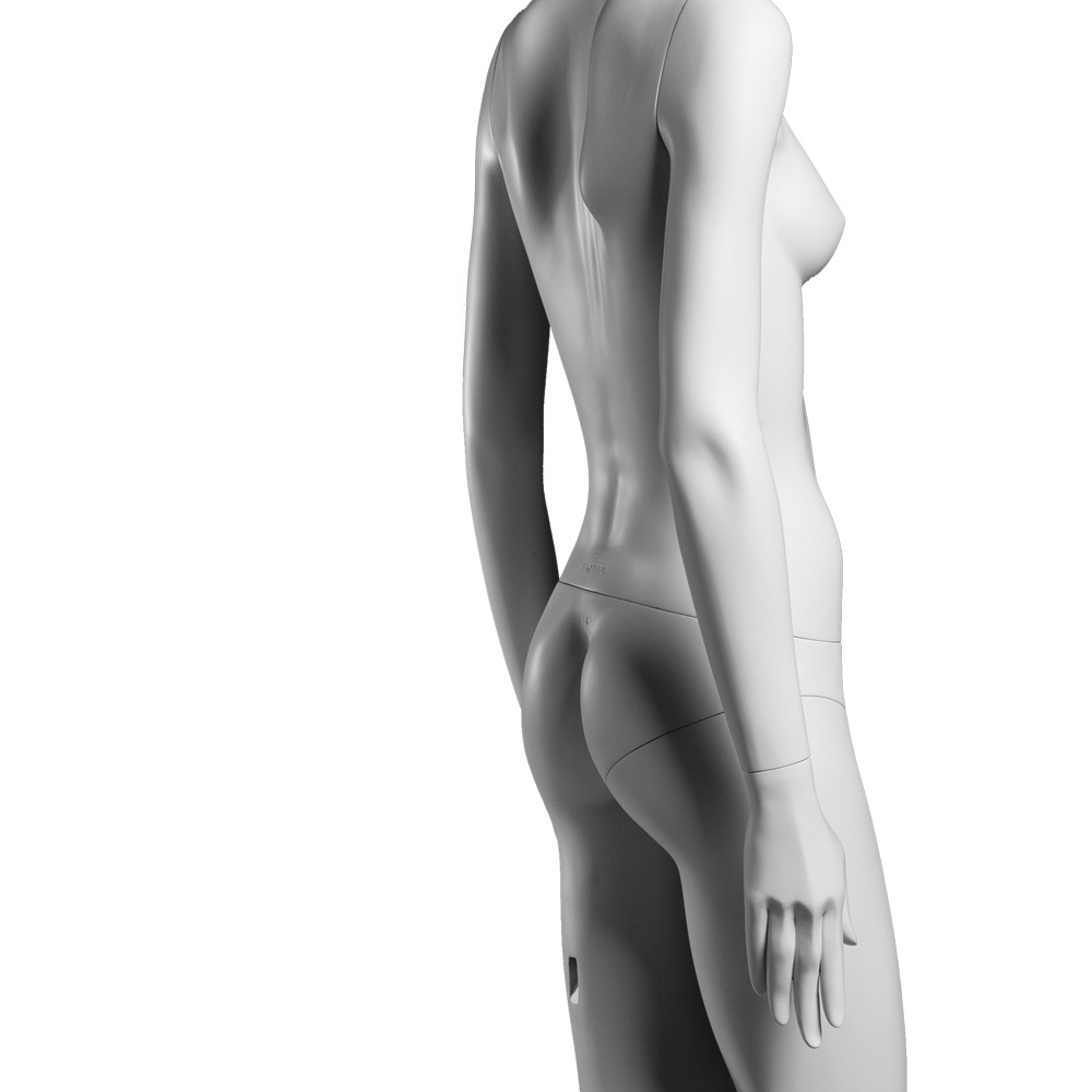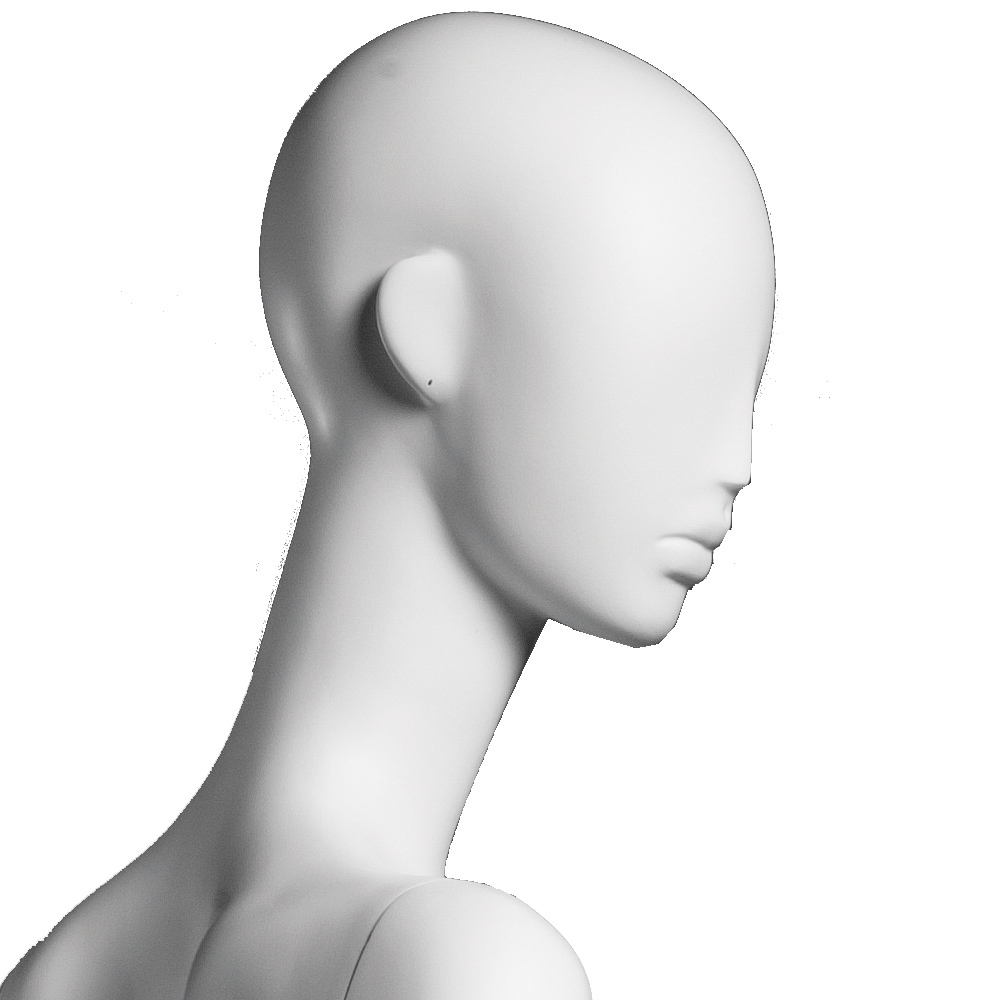 Κούκλα βιτρίνας άμορφη της σειράς Ophelia σε όρθια στάση, με τα χέρια κάτω, δεξί πόδι ελαφρώς λυγισμένο προς τα πίσω και πατούσες στις μύτες. Το κεφάλι είναι αφαιρετικό - στυλιζαρισμένο (χωρίς πολλά χαρακτηριστικά προσώπου) και κοιτάει ελαφρώς δεξιά. Είναι κατασκευασμένη από Fiberglass (λεπτές ίνες γυαλιού) ένα υλικό με μεγάλη αντοχή και μικρό βάρος.