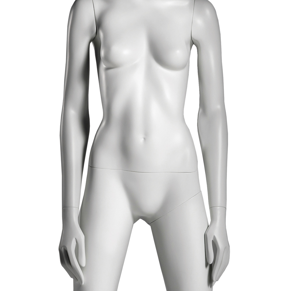Κούκλα βιτρίνας άμορφη της σειράς Ophelia σε όρθια στάση, με τα χέρια κάτω, τα πόδια σε διάσταση και πατούσες στις μύτες. Το κεφάλι είναι αφαιρετικό - στυλιζαρισμένο (χωρίς πολλά χαρακτηριστικά προσώπου) και κοιτάει ευθεία. Είναι κατασκευασμένη από Fiberglass (λεπτές ίνες γυαλιού) ένα υλικό με μεγάλη αντοχή και μικρό βάρος.